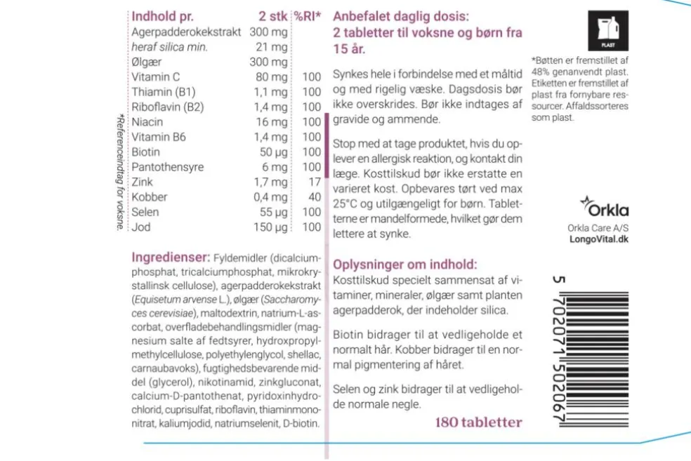 Indhold af vitaminer og mineraler kan ses under Indhold pr. daglig dosis
