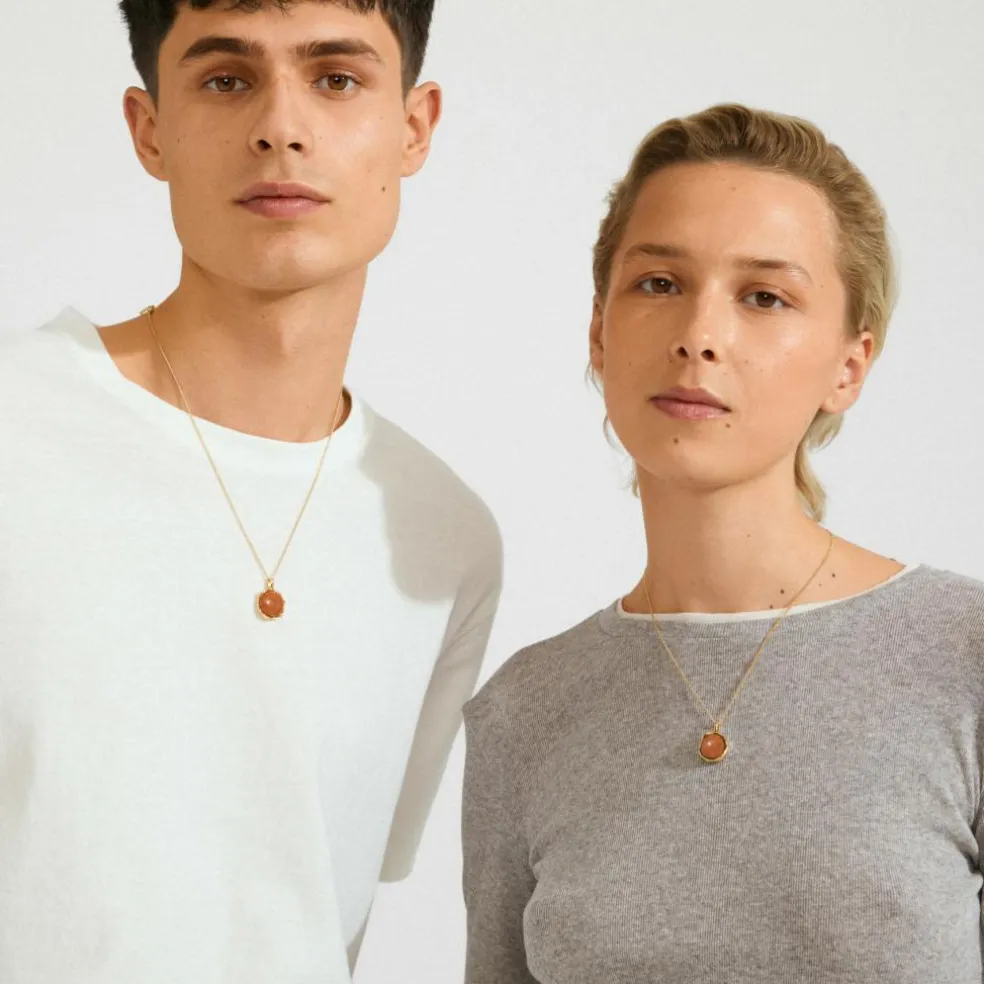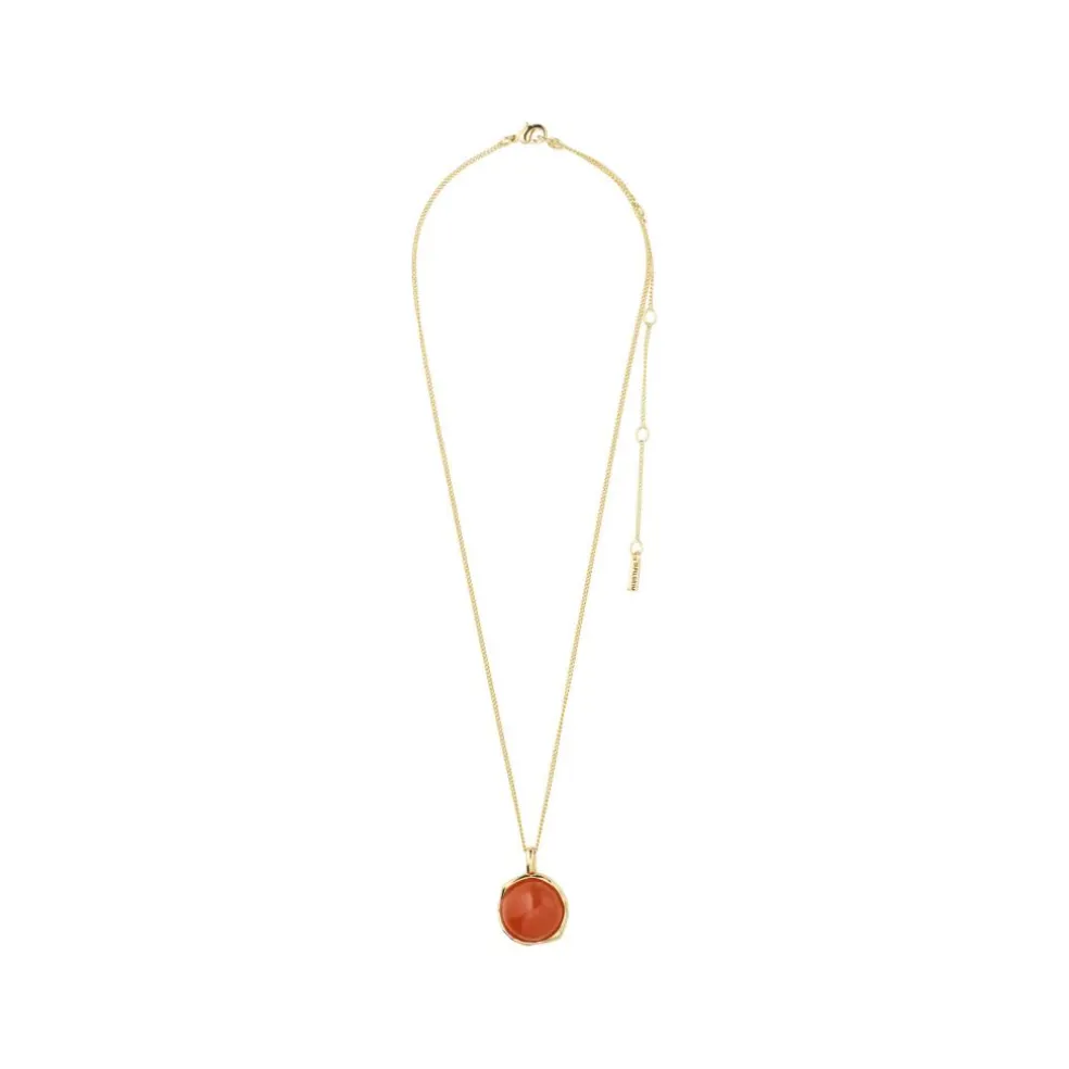 Den guldbelagte SENSE halskæde fra Pilgrim forener et stilrent design med naturlige elementer. Det runde vedhæng bærer den gyldne halvædelsten Rød Agat, der siges at symbolisere styrke, energi og kreativitet, samtidig med at den tilfører din stil en dynamisk vibe.