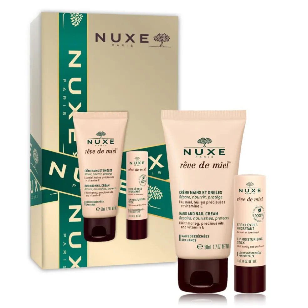 Rêve de Miel Håndcreme, som er en hånd- og negle creme som reparerer og nærer tørre, ødelagte hænder. Med akaciehonning, Rosa Mosqueta, sød mandel og avocado olier. Ikke-fedtende konsistens.