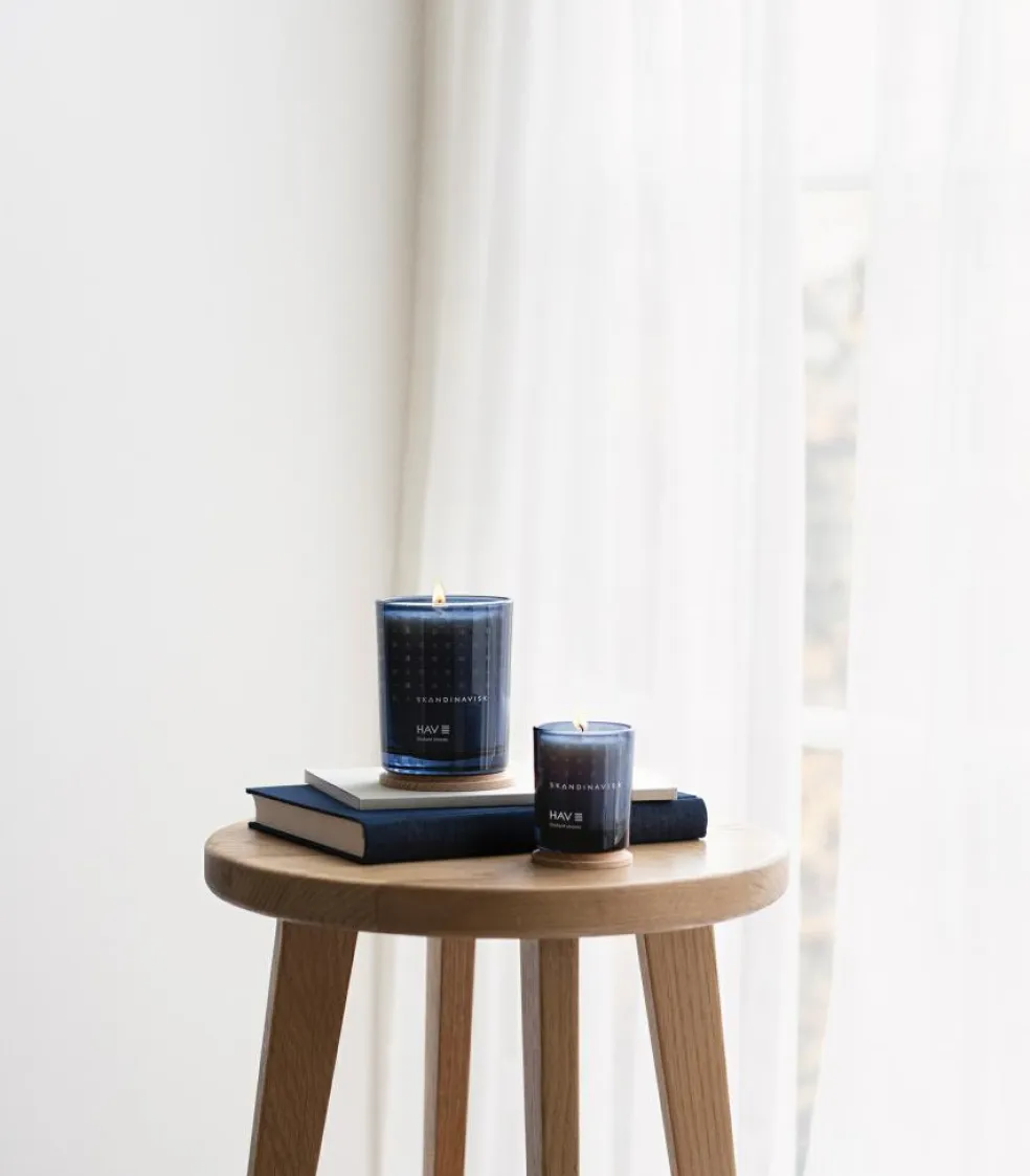 Små duftlys bestående af en voksblanding af svensk rapsolie. Lyset er vegansk og kommer i et malet glas med indgraveret FSC-certificeret bøgetræslåg.