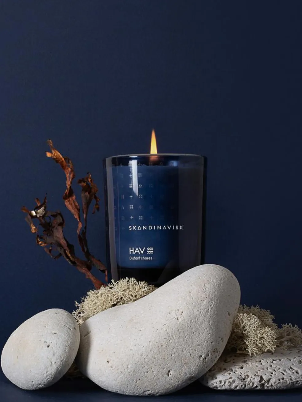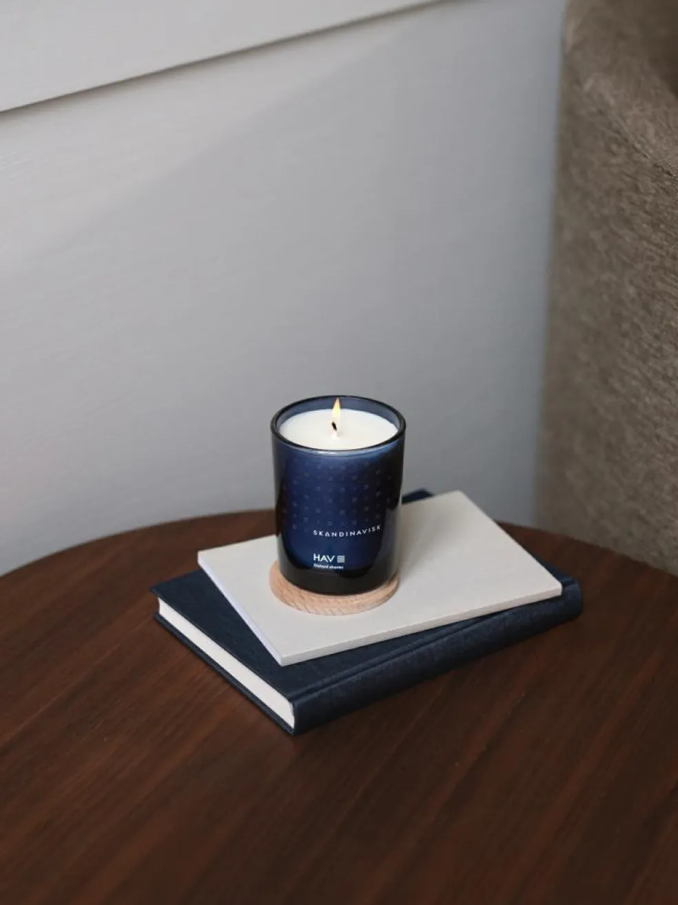 Duftlys med voks udvundet fra svensk rapsolie. Lyset er vegansk og kommer i et malet glas med indgraveret FSC-certificeret bøgetræslåg.