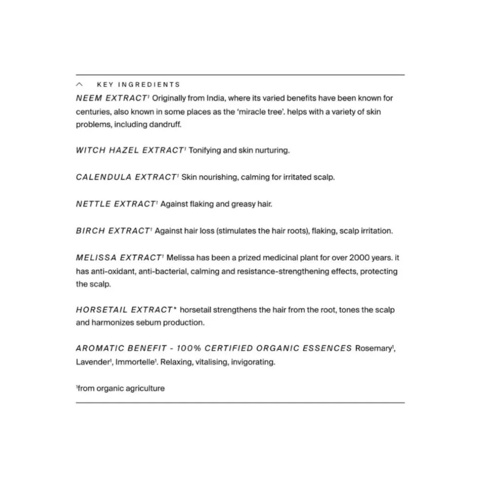 Den opfrisker og beroliger hovedbunden og kan holde skæl i skak. Masseres direkte ind i hovedbunden.