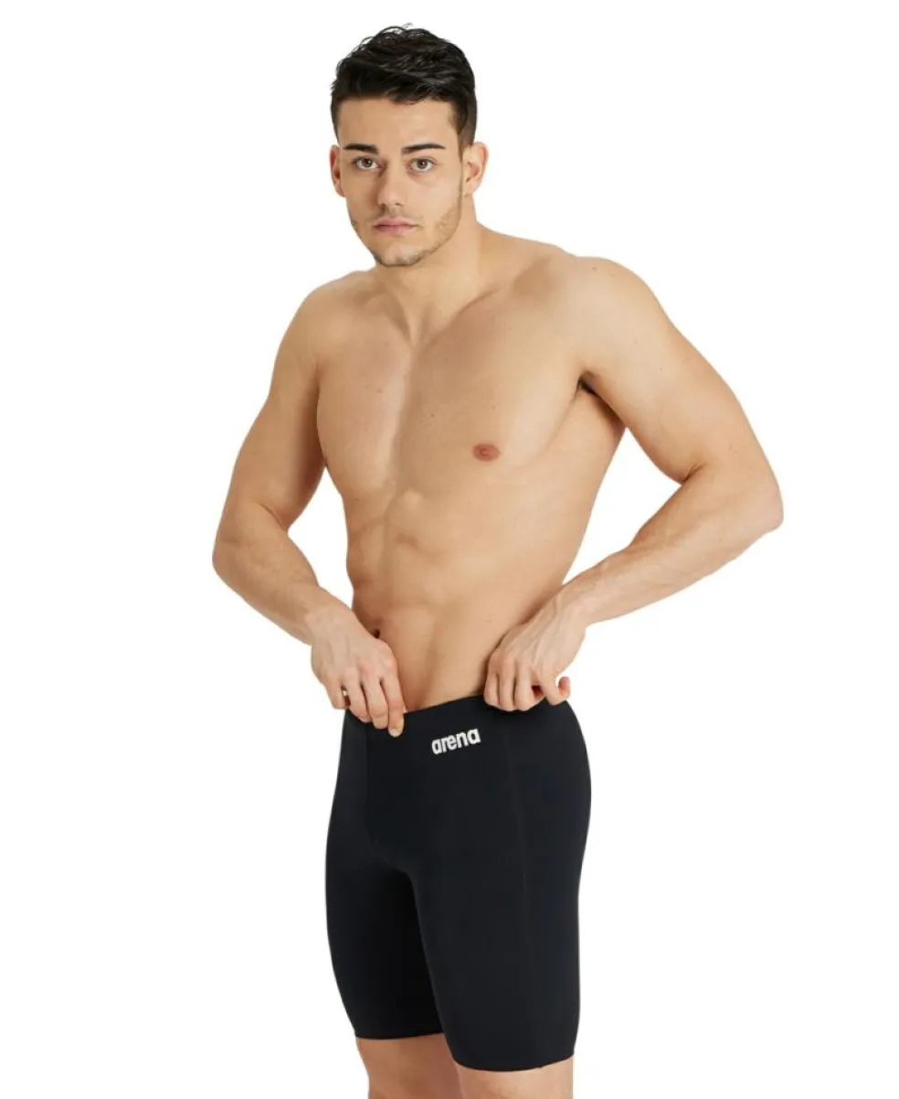 Arena Solid badeshorts har et klassisk ensfarvet design med et diskret logo foran, hvilket giver et professionelt og enkelt look. Den lange længde og den lette foring sikrer en komfortabel og funktionel pasform, ideel til lange træningssessioner.