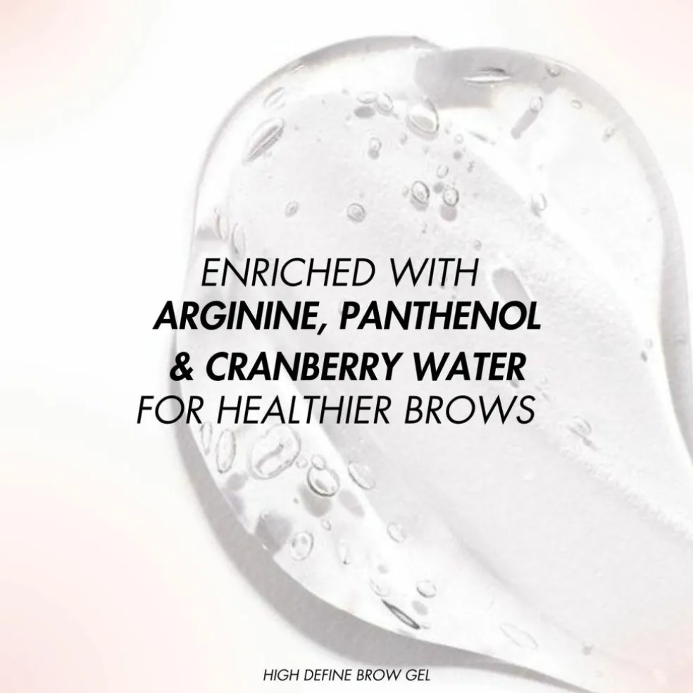 High Define Brow Gel er en multifunktionel 3-i-1 bryngel, der nærer, definerer og fastholder dine øjenbryn i perfekt form uden at gøre dem stive. Den avancerede formular indeholder arginin, panthenol og tranebærkoncentrat, der giver pleje og fugt, så dine bryn ser fantastiske ud og føles sunde.