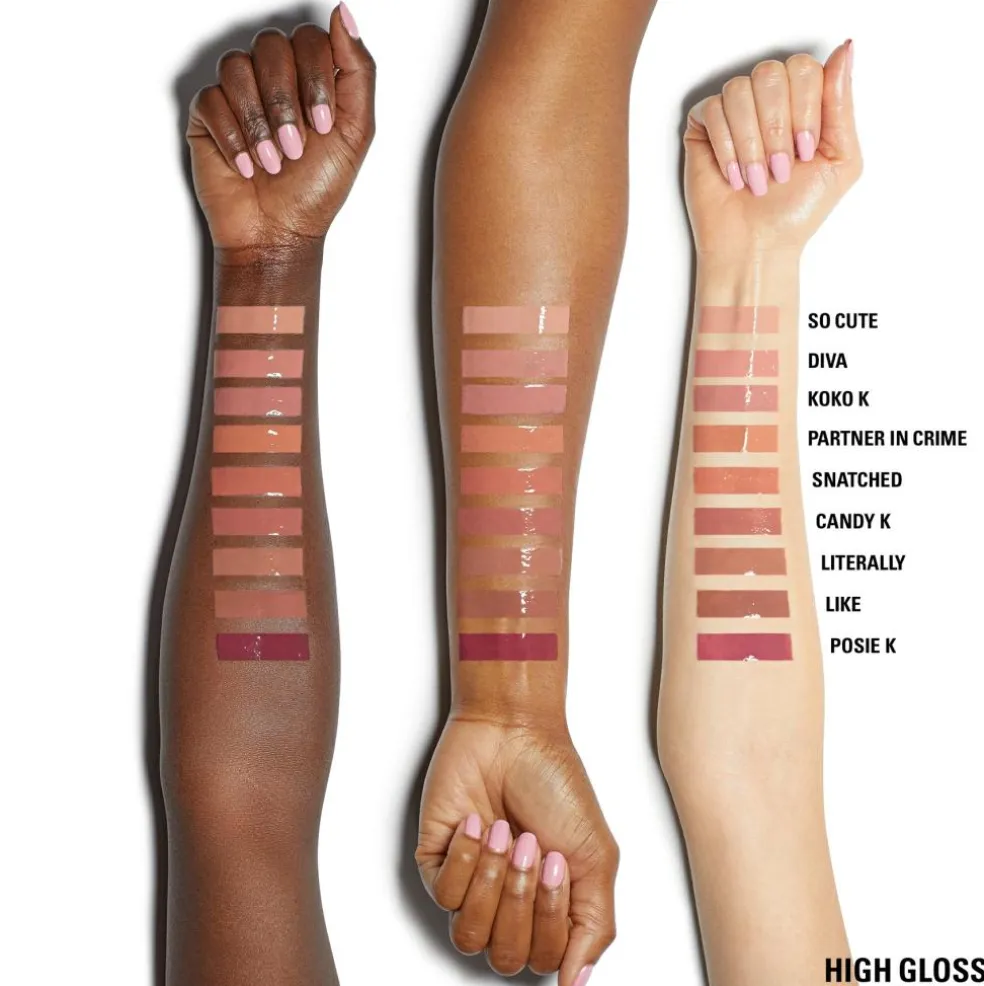 Kylie Cosmetics High Gloss kan bruges alene eller oven på læbestift, hvis du vil have en ekstra flot glans. Den indeholder en unik blanding af glansgivende og plejende olier, der gør produktet blødt, cremet og gør påføringen supernem.