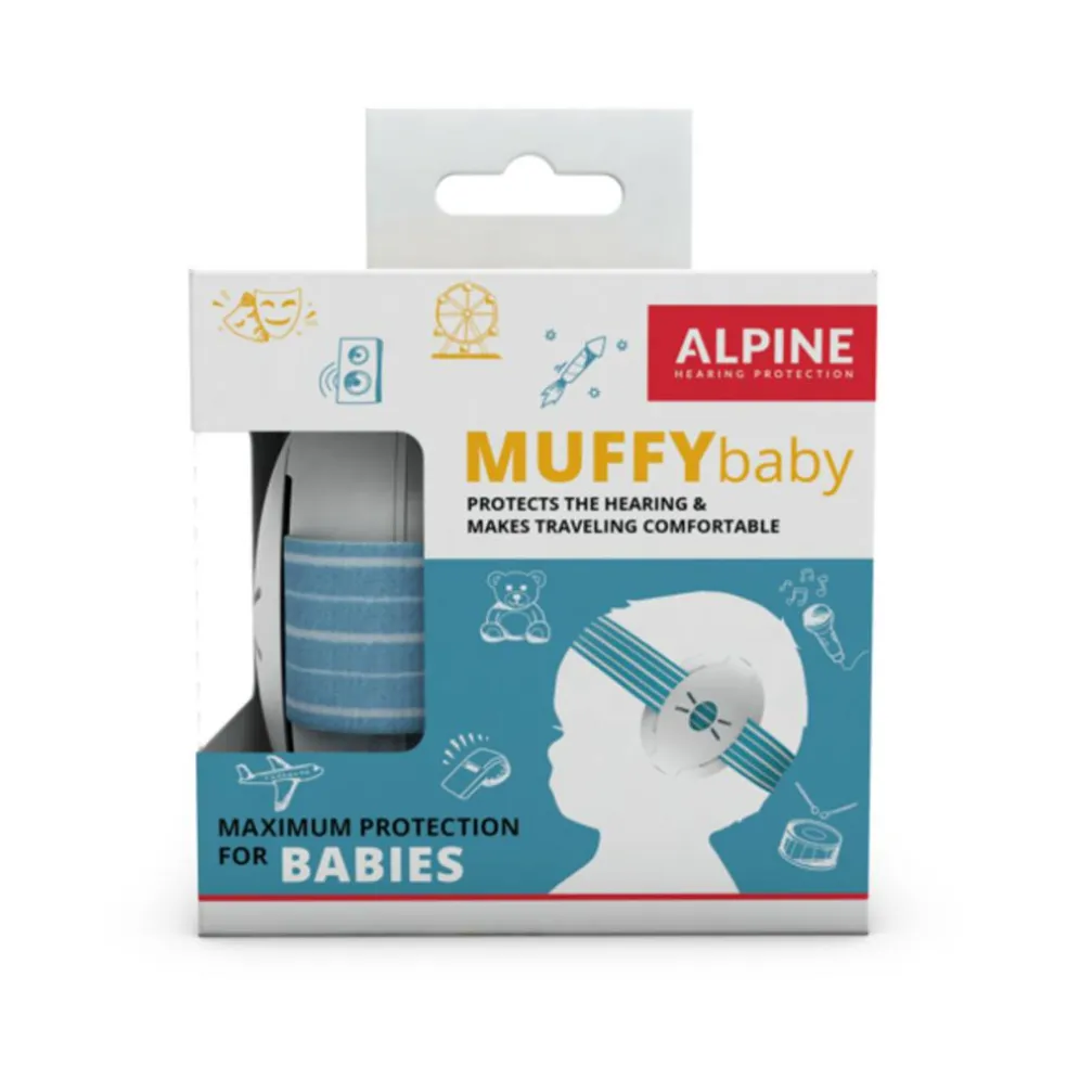 Muffy Baby er fremstillet af flere lag behageligt skum, der sikrer optimal pasform og tilpasning omkring ørerne. Det skridsikre hovedbånd sikrer, at høreværnet bliver på plads, mens den diagonale placering ikke udøver tryk på fontanellen.