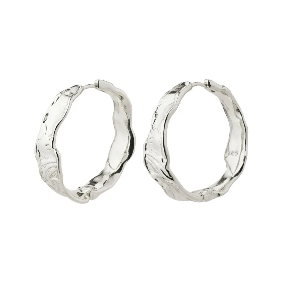 Go for the classics! Med EILEEN øreringene fra Pilgrim får du et sæt classy, sølvbelagte hoops, du kan bruge til alt. Øreringenes twirled design og wavy lines giver dig et powerful finishing touch. Style creolerne med joggers og en chunky strik for et mix and match look. Et recycled item, der er lavet af 99% genanvendt materiale.