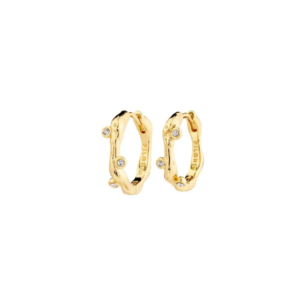 Add a little sparkle! De guldbelagte HERMIONE huggie hoops fra Pilgrim er det perfekte go-to item. Øreringenes organic shapes giver en handcrafted feel, mens farverige Preciosa-krystaller tilføjer ekstra sparkle. Style øreringene med et oversized suit og en cropped top for et classy look med et touch af glam. Et recycled item, der er lavet af 96% genanvendt materiale, med omtanke for miljøet.