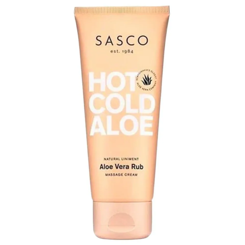 Sasco Aloe Vera Rub liniment er et sports- og massageinstrument, der indeholder økologisk dyrket aloe vera, eukalyptusolie og menthol.