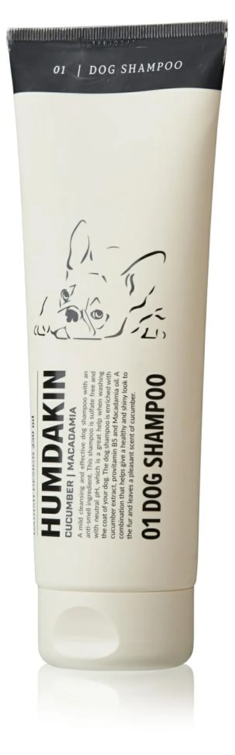 Ligesom den velkendte Humdakin shampoo kan dine firbenede venner nu forkæles med en mild shampoo, der indeholder plejende ekstrakter fra agurk og macadamia.