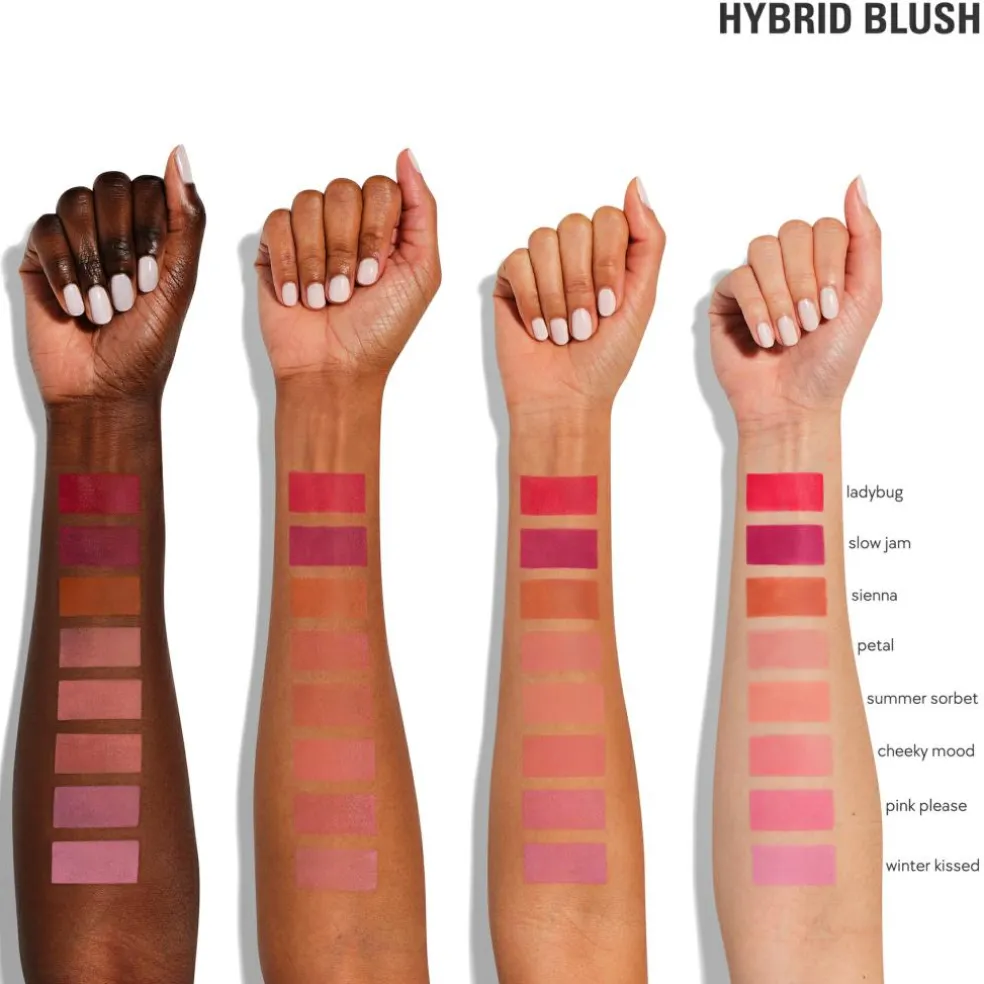 Hybrid Blush Powder fra Kylie Cosmetics er en silkeblød blush med en vægtløs formel der smelter ind i huden som en creme, men med en “soft focus” effekt som et pudder. Den højpigmenterede, opbyggelige formel har en ruskindslignende tekstur, som glider jævnt over huden og giver et blødt, blurrende resultat. Blushen giver kinderne naturlig farve med en second skin, soft-mat finish som holder i op til 12 timer. Den lægger sig smukt over makeup uden at se kaget, tør eller ujævn ud. Vand- og svedresistent – bliver siddende, hvor den skal, hele dagen. Findes i flere indbydende nuancer. Vegansk og ikke-komedogen formel.• Silkeblød, vægtløs formel• Blurred, mat finish• Opbyggelig og nem at tone• Holder op til 12 timer Påfør på kinderne med en børste for en naturlig farve og en blød, mat finish. Opbyg intentiteten efter ønsket resultat.