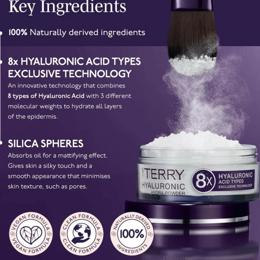 Dens 100% naturlige, rene og veganske formel indeholder kun 2 ingredienser: Silica og hyaluronsyre af 8 forskellige slags. Hyaluronsyre har fantastiske fugtgivende egenskaber. Det holder op til 1000 gange sin vægt i vand. Den eksklusive teknologi med 8x hyaluronsyrer sikrer tredobbelt hydrering til huden.