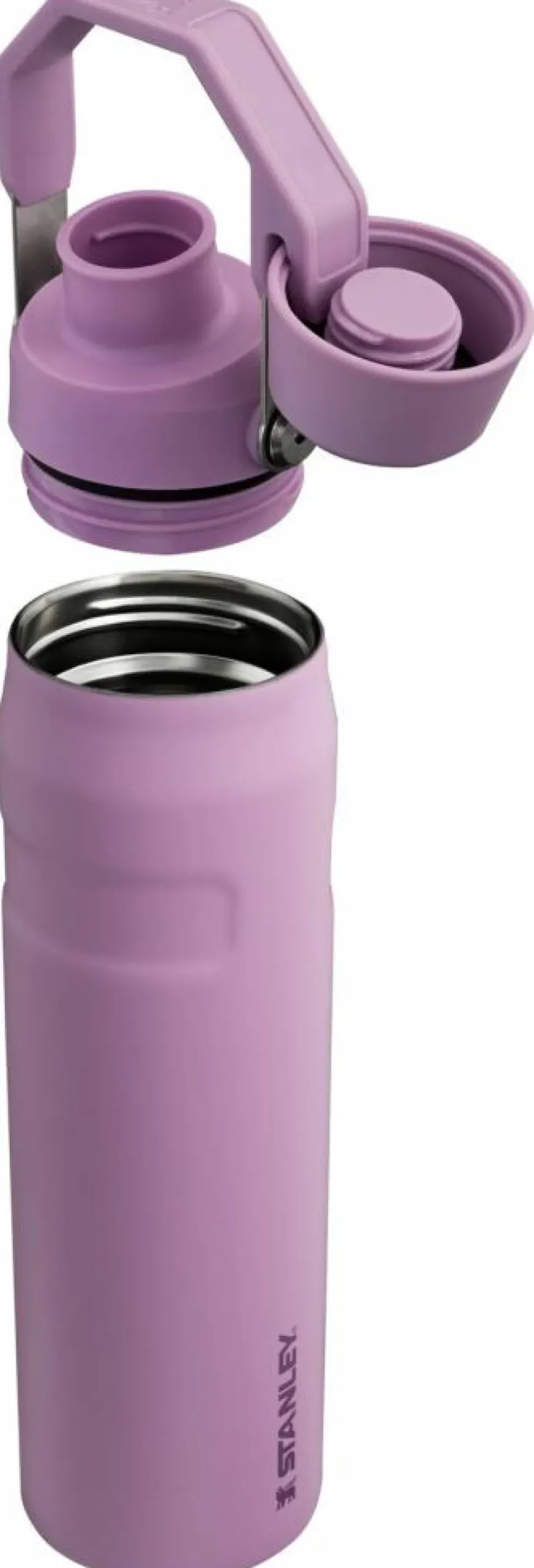 Over tuden er der et låg, som kan sættes fast i bærehåndtaget, når flasken er åben. Hele låget kan skrues af, og den store åbning nedenunder gør det nemt at fylde isterninger i og at gøre den rent, hvilket kan ske i opvaskemaskinen.