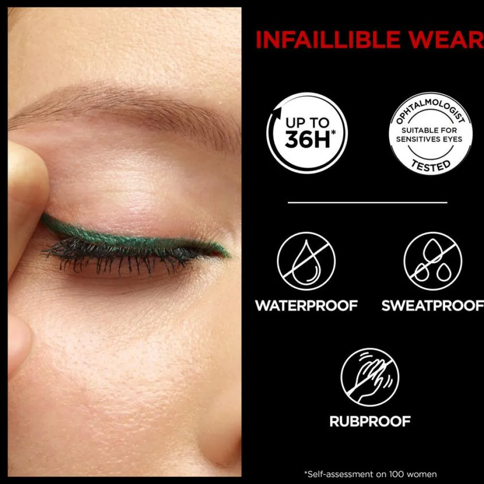 Eyelineren flyder eller tværer ikke ud, er vandfast og resultatet holder i op til 36 timer*.*Egenvurdering, 100 personer.
