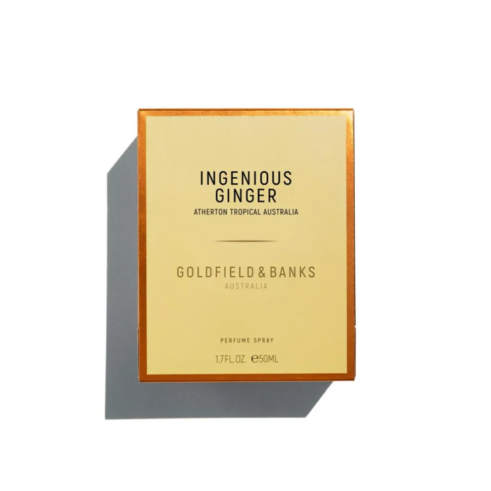 Ingenious Ginger er en olfaktorisk forestilling om den uparfumerede ingefærliljeblomst og er en abstrakt citrus-, blomster- og amberagtig parfume, der udtrykker Goldfield & Banks’ grundlæggers mest elskede tropiske blomst, som vokser i overflod ved hans feriehus i de fugtige troper. Denne opløftende parfume åbner med en eksplosion af bergamotte, som forstærkes af den sprudlende duft af ingefær, den funklende mandarin og den strålende og solrige aura af magnolia.