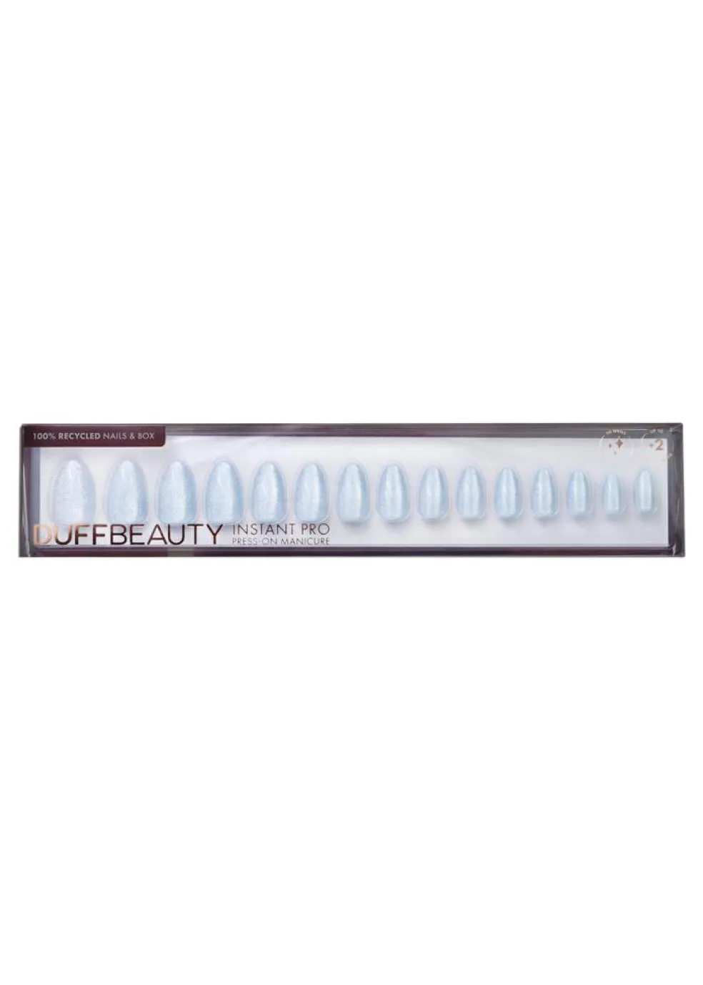 Glacier Blue har en flot kølig nuance med strøj af glimmereffekt over hele neglen. Neglene giver et festligt og elegant look.