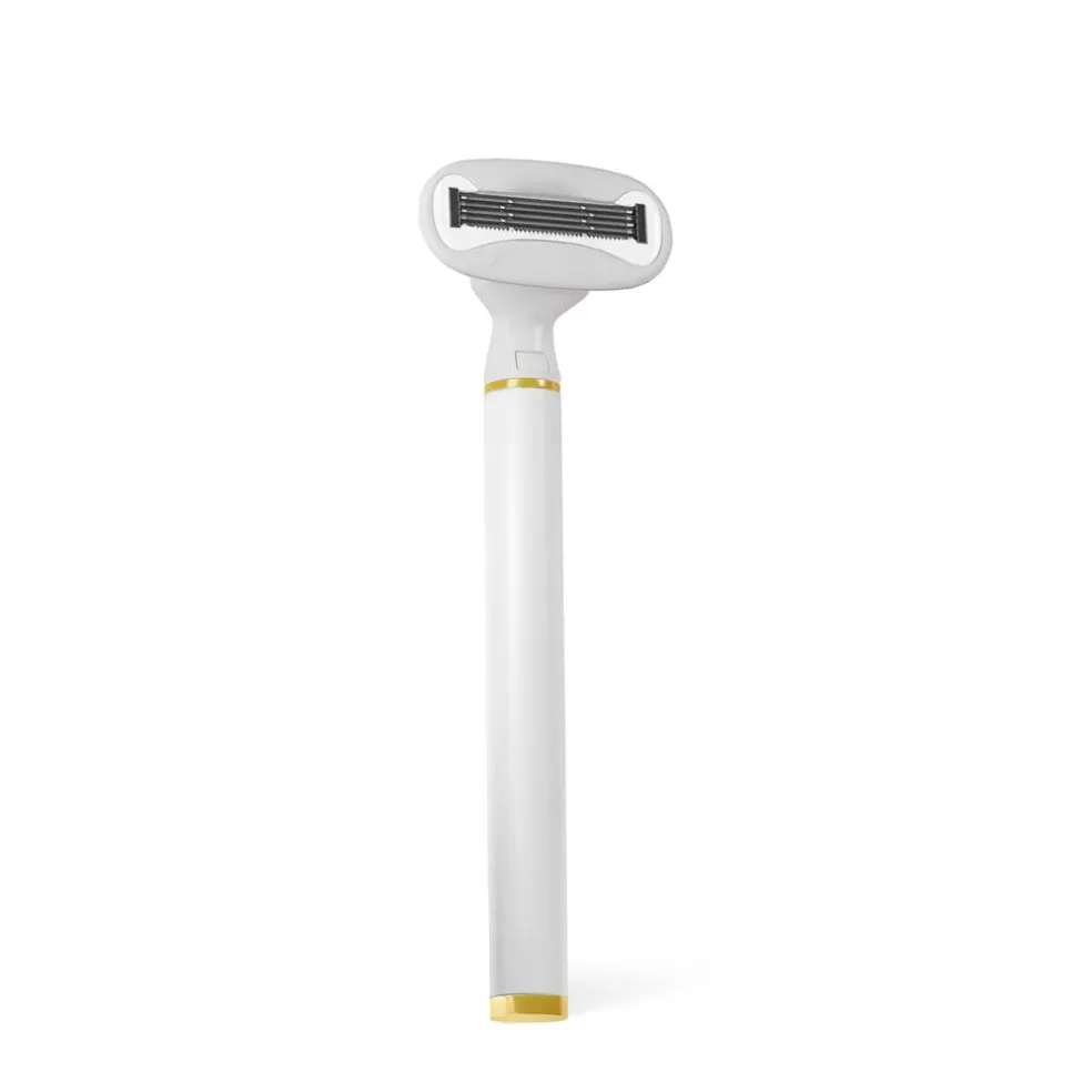 KIT indeholder 1 stålhåndtag (hvid) og 3 magnetiske barberblade.