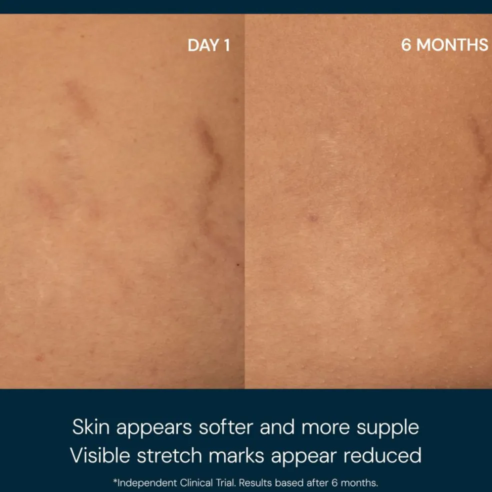 Klinisk bevist* at udtone farven på strækmærker med 17 % på 3 måneder°