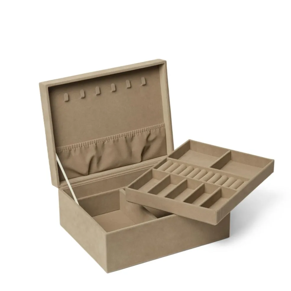 Det har også en bakke, som kan løftes, hvilket giver et ekstra rum, hvor du kan opbevare dine smykker.