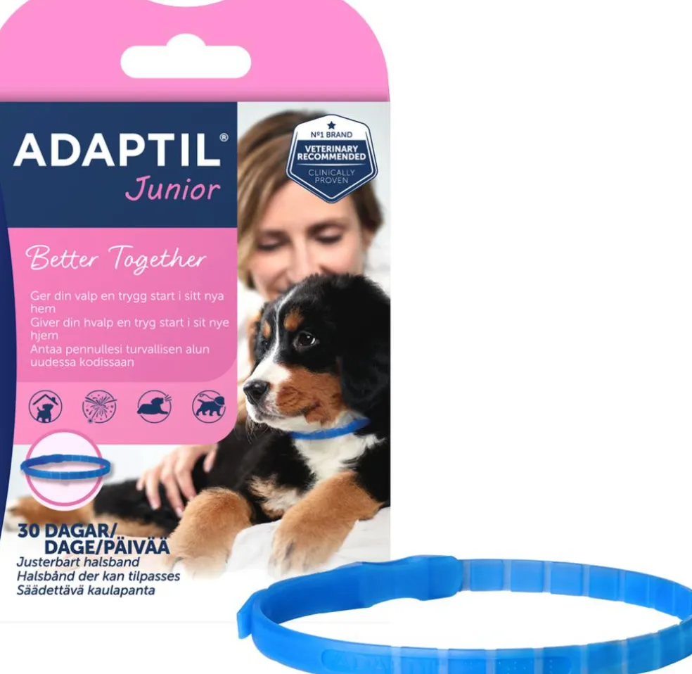 Når hvalpen bliver voksen, kan støtten fra de tryghedsskabende feromoner med fordel fortsætte med andre ADAPTIL produkter, f.eks. ADAPTIL Calm Halsbånd eller Diffuser.