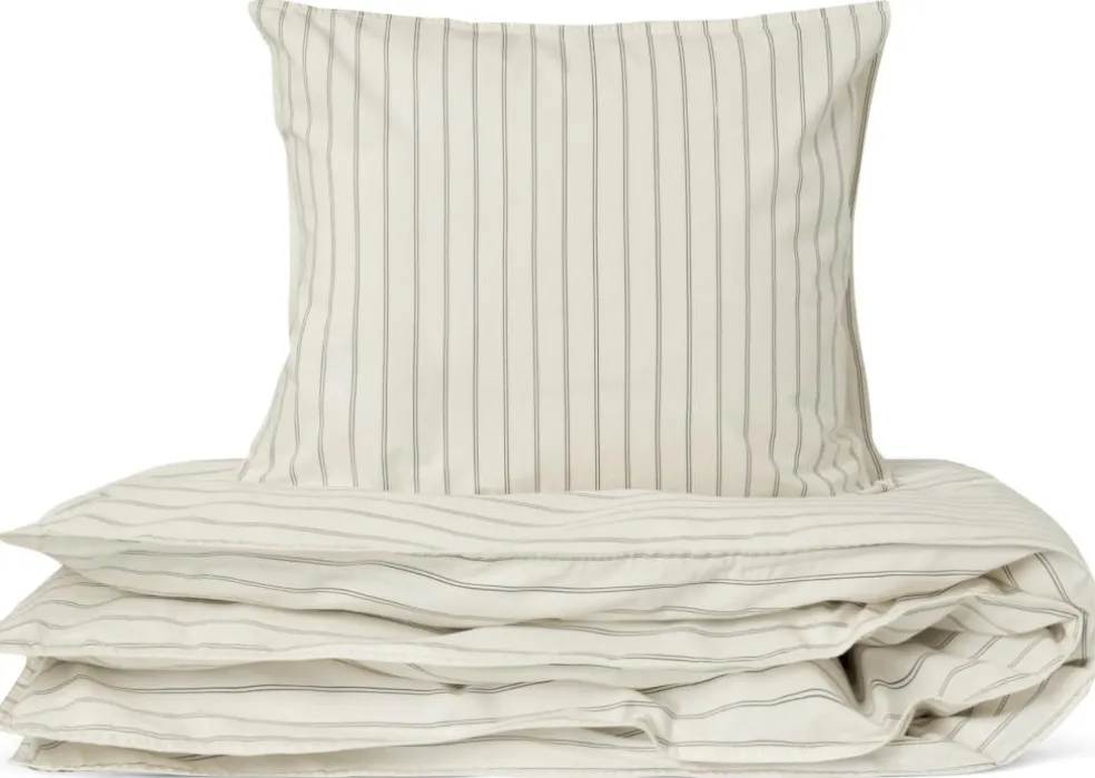 Pudebetræk i 40×45 cm med konvolutlukning og dynebetræk i 100×140 cm der lukkes med knapper.