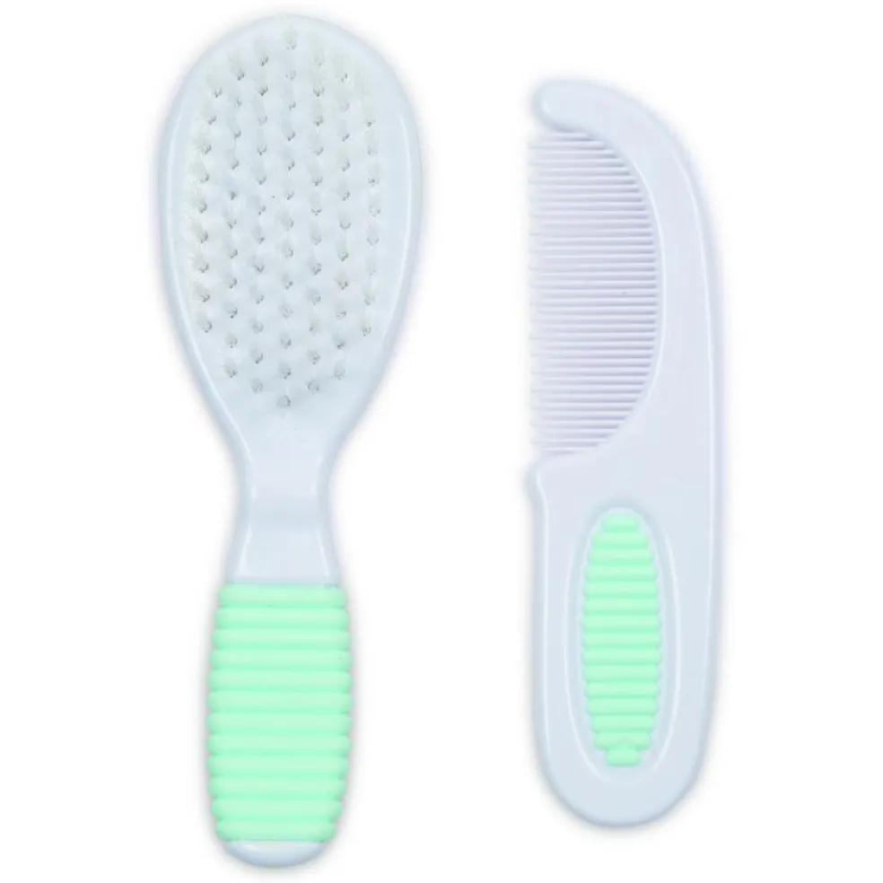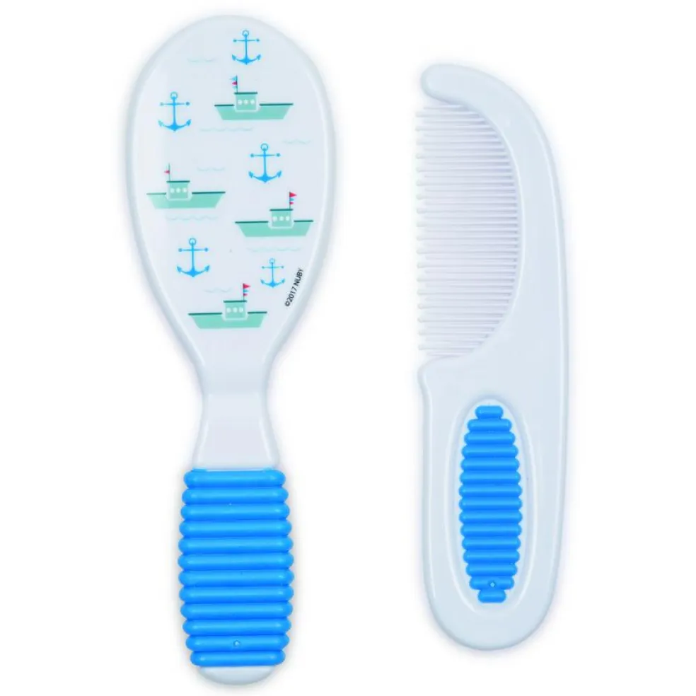 Kam- børstesæt til baby med blødt greb og børstehoved. Alle Nûby produkter er BPA (Bisphenol A) PVC- og phthalatfri og godkendt efter det europæiske produktsikkerhedsdirektiv 2001/95/EC samt CE mærket. Farven kan variere fra bestilling til bestilling.