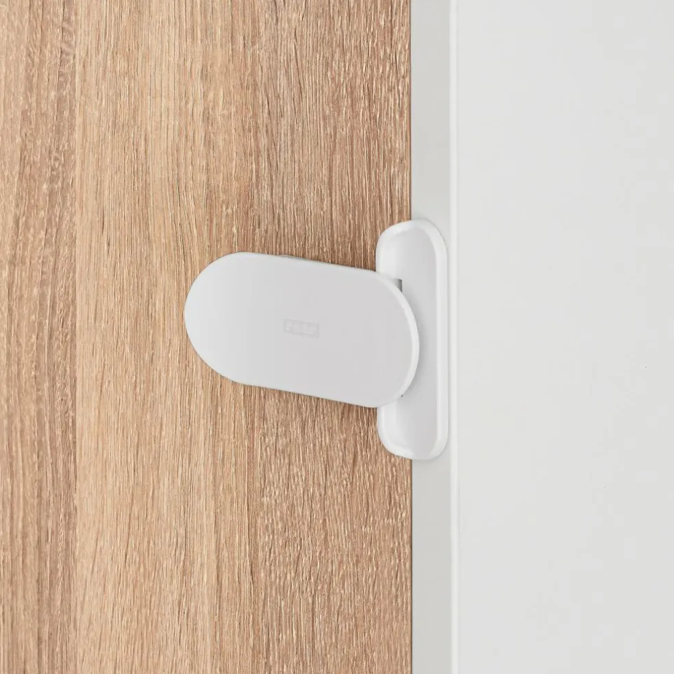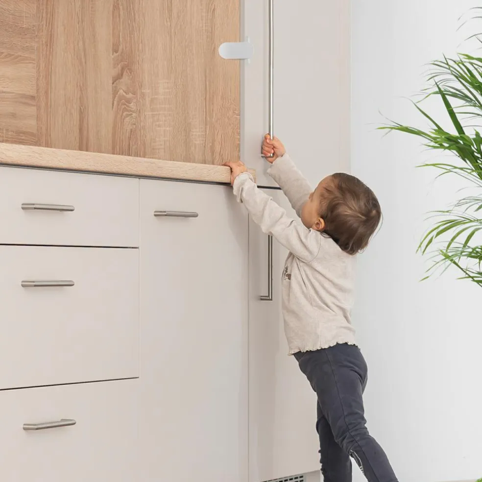Med denne køleskabslås kan man børnesikre køleskab, mikroovn, skydedøre m.m.