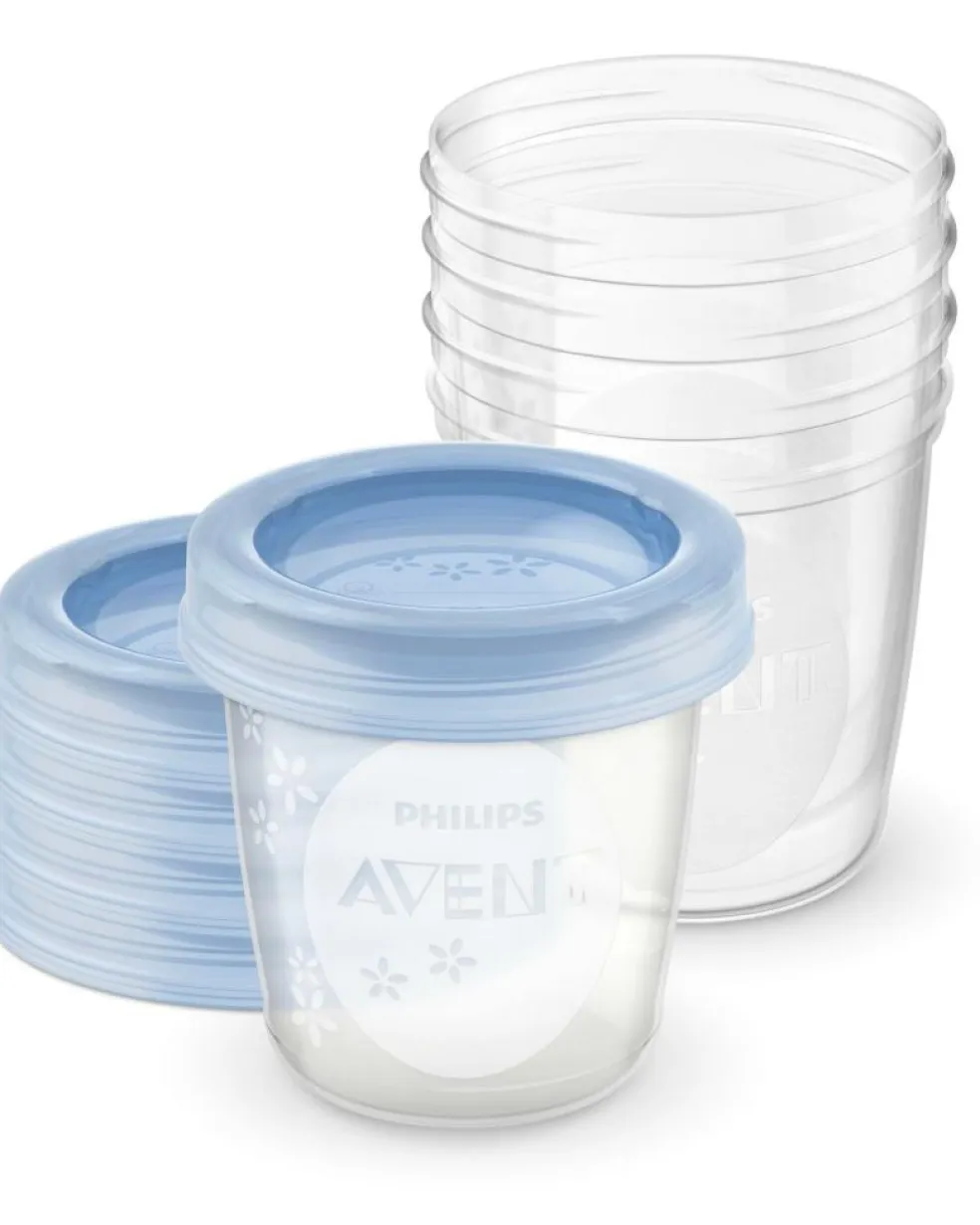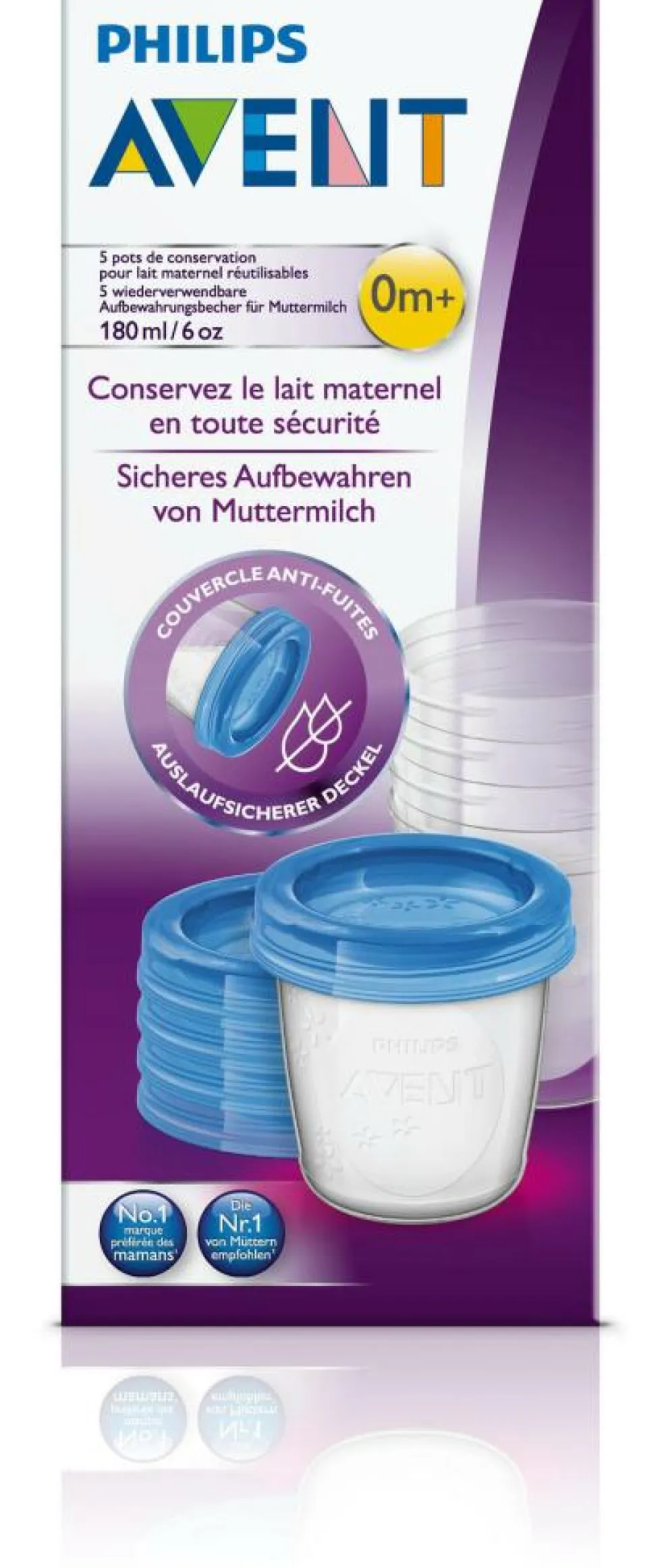 Philips Avent-bægre til opbevaring har et låg, der giver en tætsluttende forsegling til sikker opbevaring og transport.