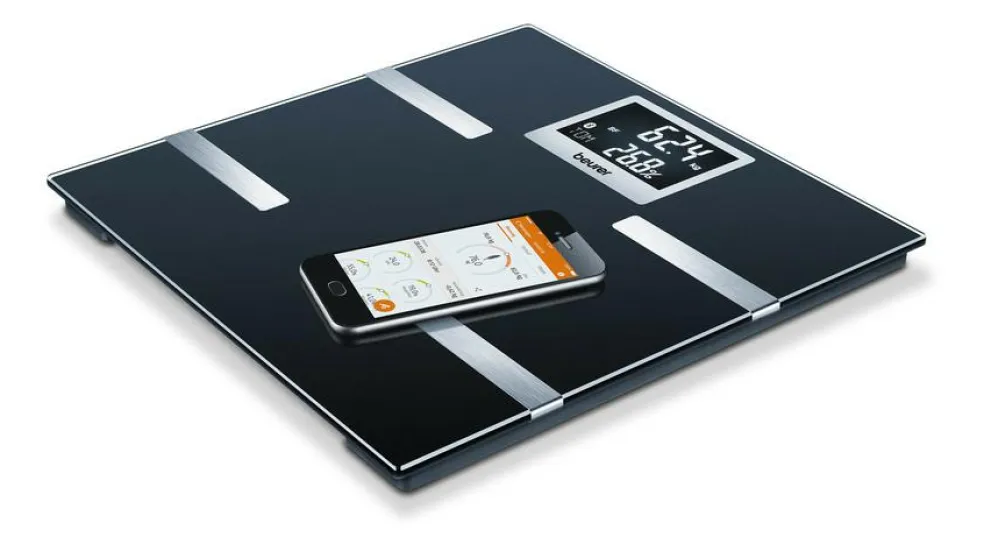 Beurer BF 700 kropsanalysevægt med innovativ bluetooth teknologi, der gør det muligt for dig at holde styr på dine kropsmålinger både derhjemme og på farten via den gratis app Beurer Health Manager.