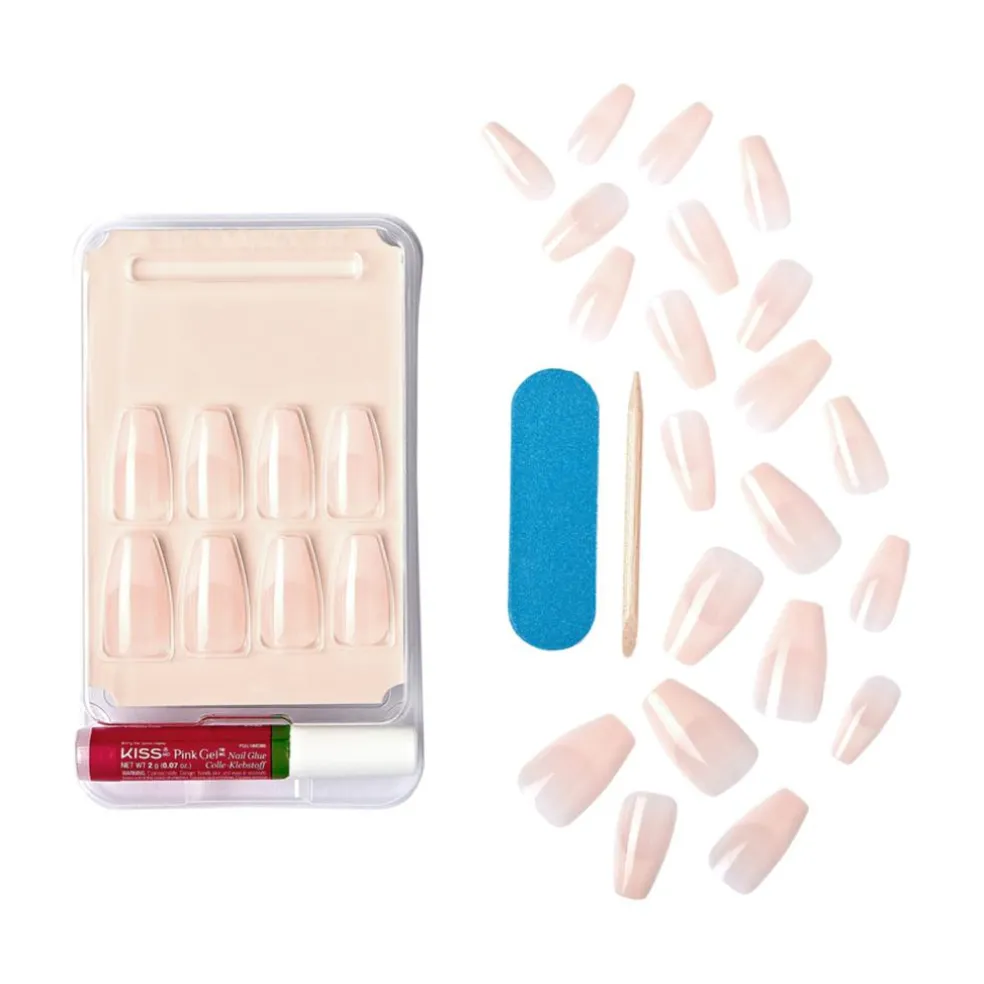 Kiss Salon Acrylic Nude Frecnsh Nails er nogle unikke kunstige negle. Der er indtil flere patenter på disse negle, bl.a. kan den franske manicure ikke flække. Det unikke design sørger for at neglen har en behagelig pasform og den kunstige negl er tyndere nede ved neglebåndet, for et mere naturlig look. Du får et flot resultat på få minutter.