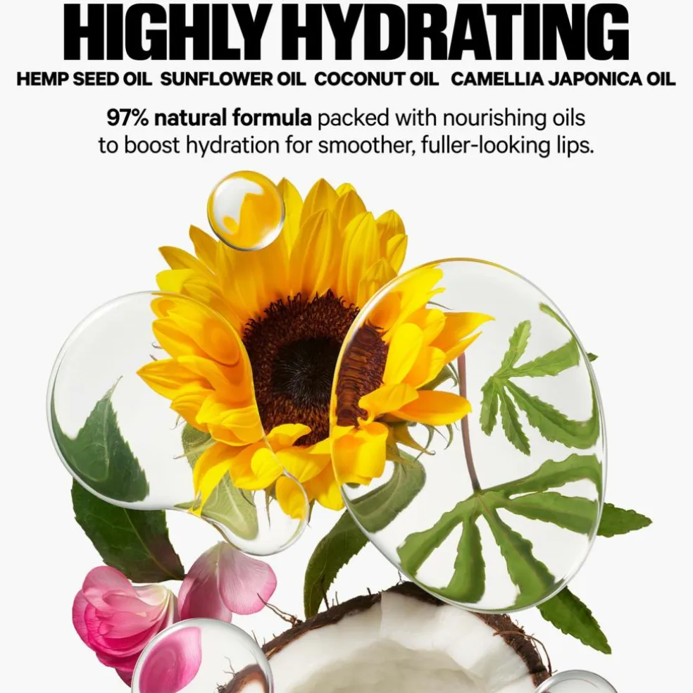 En nærende blanding af hampefrøolie, meadowfoam-frøolie (også kaldet engskum), kokosolie og kamelia japonica-olie giver intens fugt og glattere, fyldigere læber.