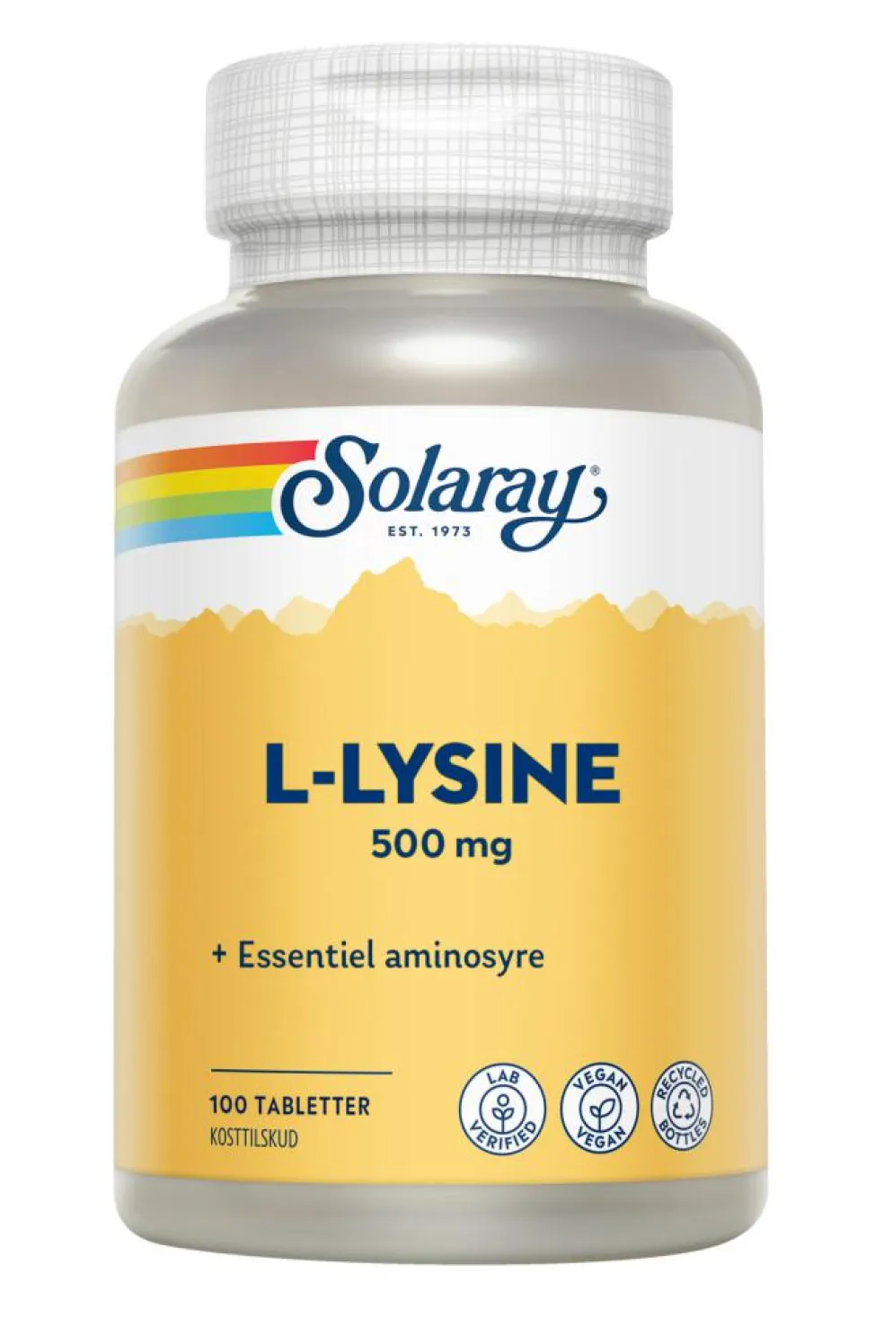 Solaray L-lysin indeholder L-lysin i dens frie form, og er i tabletter med 500 mg L-lysin per tablet.