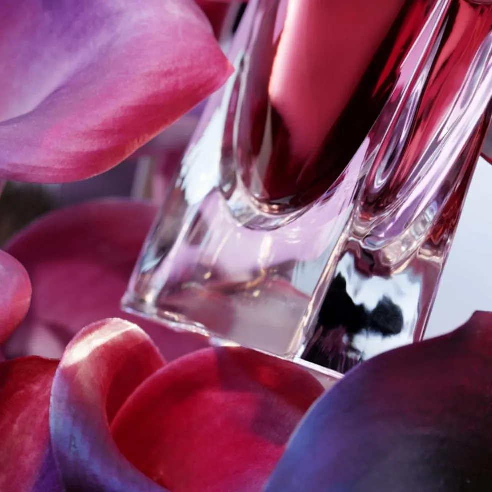 Flakonen er blevet genfortolket og indgraveret med vores ikoniske smil. Den har en skarp, firkantet form, der skaber en kontrast mellem bløde kurver og skarpe linjer. Designet er lige så dristigt og unikt som den kvinde, der bærer det.
