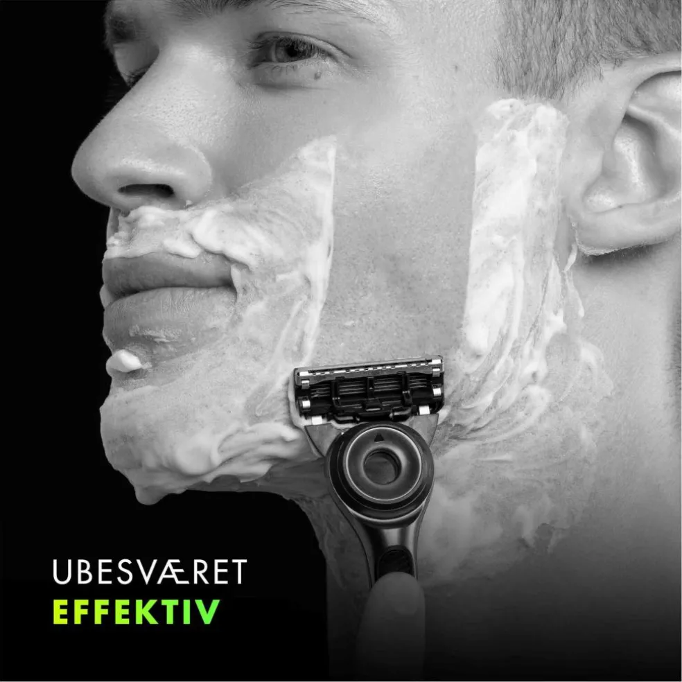 Denne innovative barberblad har fem skarpe blade og en åbning i midten, hvor eksfolieringsbaren passer og klikkes på plads med et enkelt ‘klik’.