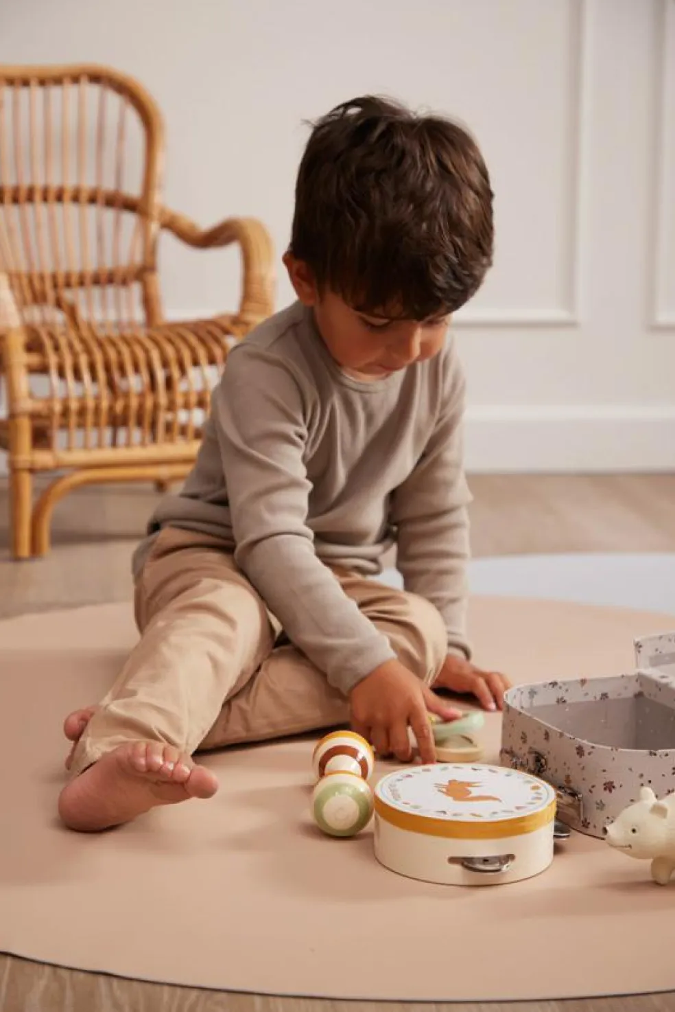 Med denne fine legekuffert med instrumenter kan dit barn udforske lyde og rytmer, samtidig med at det udvikler sin finmotorik.