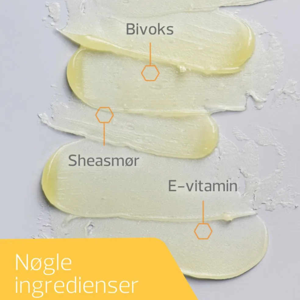 - Bivoks og lanolin fugter, blødgør og reducerer TEWL