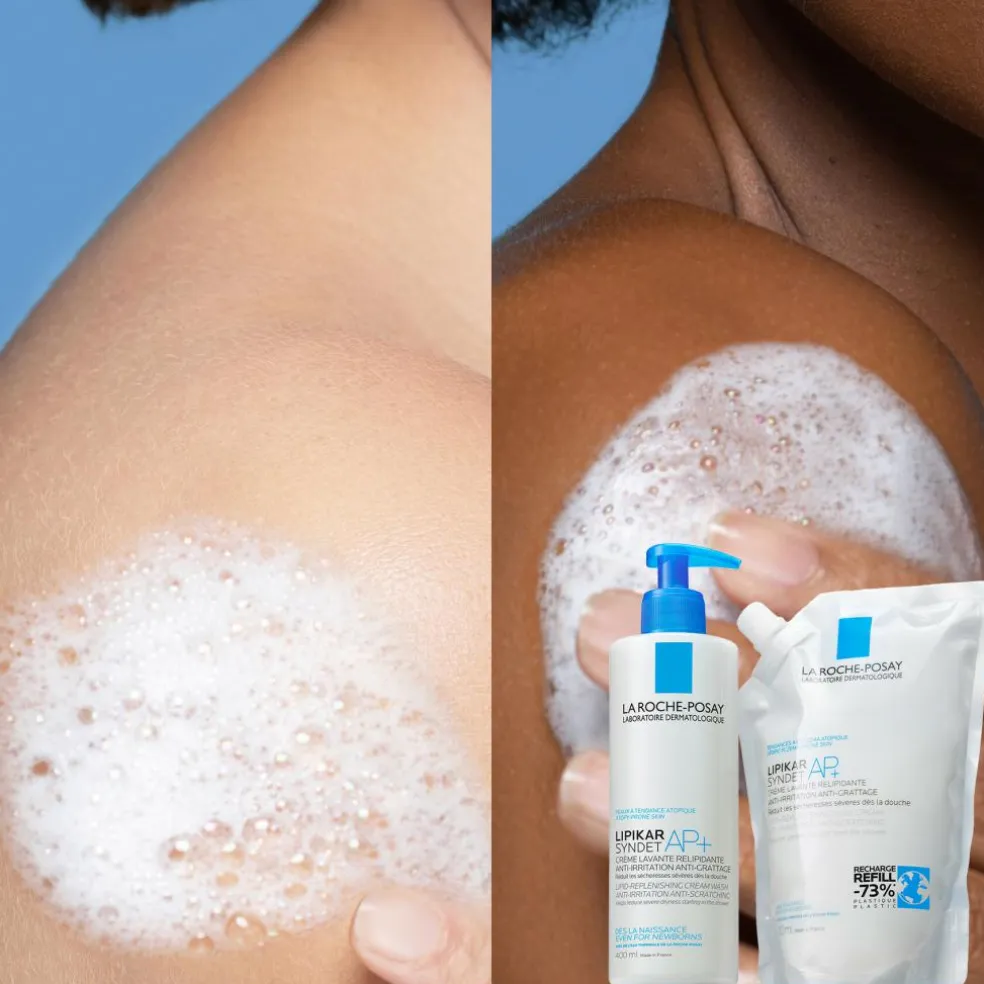 Beroligende vaskegelécreme til krop som hjælper til at reducere kløe og irritationer forårsaget af tørhed, allerede i badet.