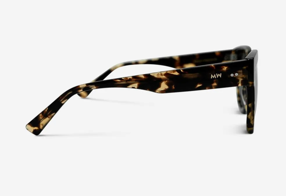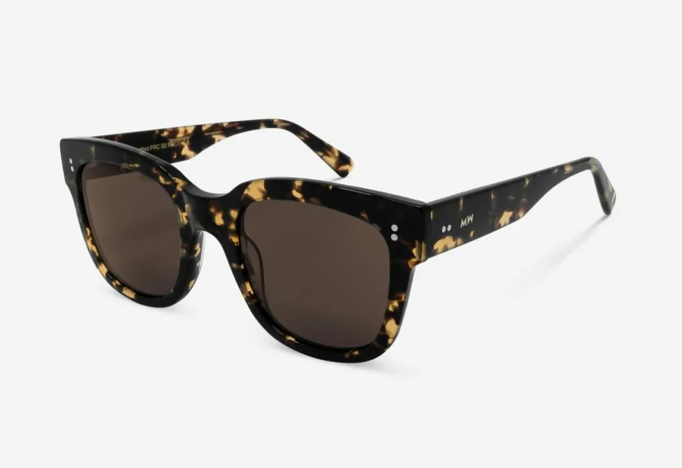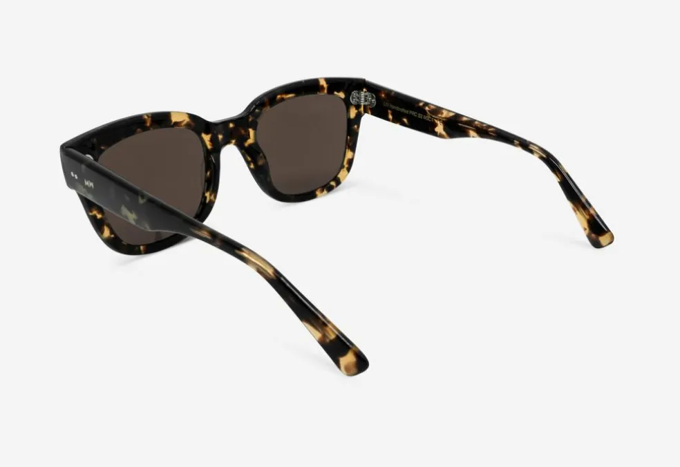 Solbrillerne er lavet af håndlavet acetat og er designet i Danmark af en lille dansk virksomhed. Solbrillerne har nickel-fri hænglser, fuld UV400A+B beskyttelse og kommer i en hvid æske med en mikrofiberpose som også kan bruges som pudseklud.