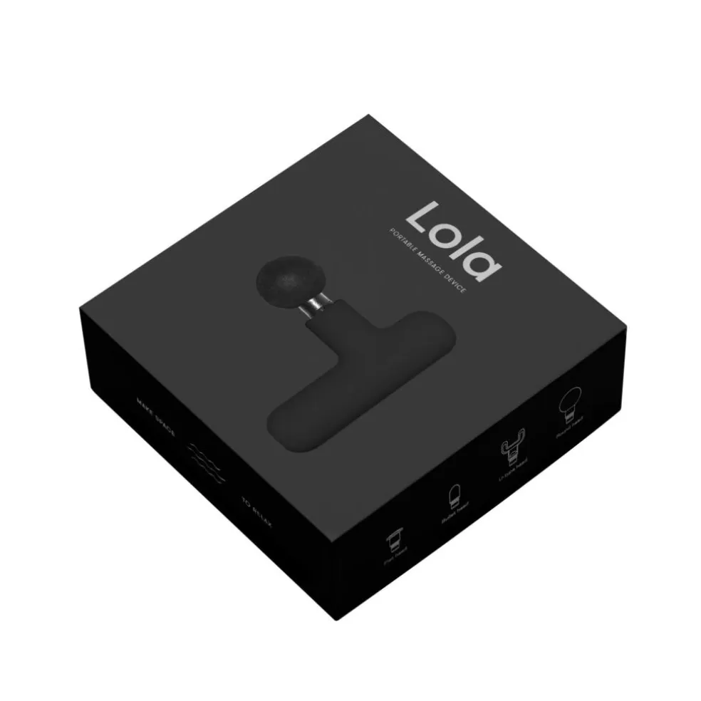 Indeholder: Lola Massage Gun, 4 Massagehoveder, USB Ladekabel, Stofpose