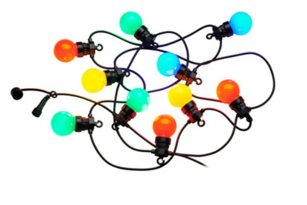 Ideel til gadefester, børnefødselsdage, en hurtig og flot måde at få en festlig stemning på. Lyskæden er til både indendørs og udendørs brug.