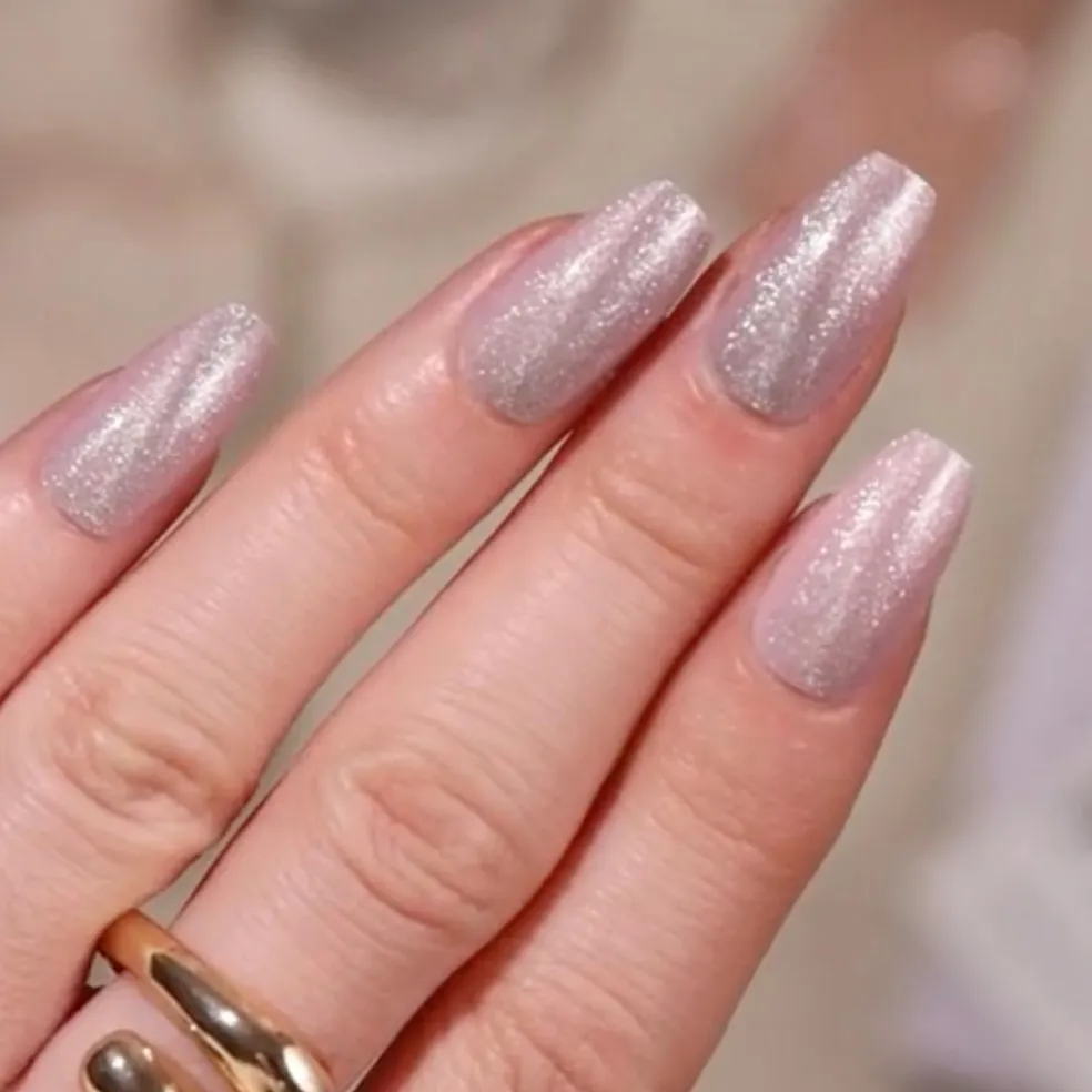 Denne fantastiske coffin mani med glitrende pink glitter er magnetiseret for at skabe en fløjlsglittereffekt, der ikke er af denne verden!