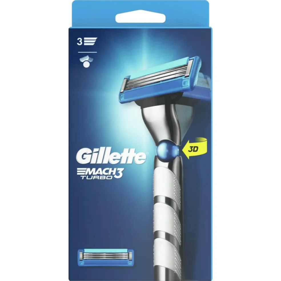 Gillette Mach3 Turbo-barberskraber til mænd leverer en præcis og klassisk barbering, du kan stole på. Med ergonomisk håndtag med 3D-bevægelse, der tilpasser sig dit ansigt og giver en tæt og effektiv barbering af hele ansigtet. Med tre stærkere end stål-blade, der holder sig skarpere længere (vs. Sensor3) er det ikke underligt, at det er den foretrukne skraber med tre blade i verden (beregning fra Procter & Gamble baseret på Nielsens salgsoplysninger fra september 2018 til august 2019. Blandt skrabere med tre blade, til mænd).