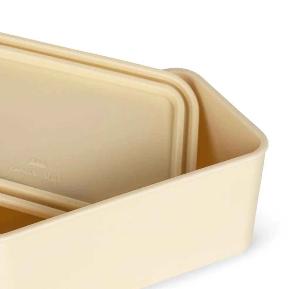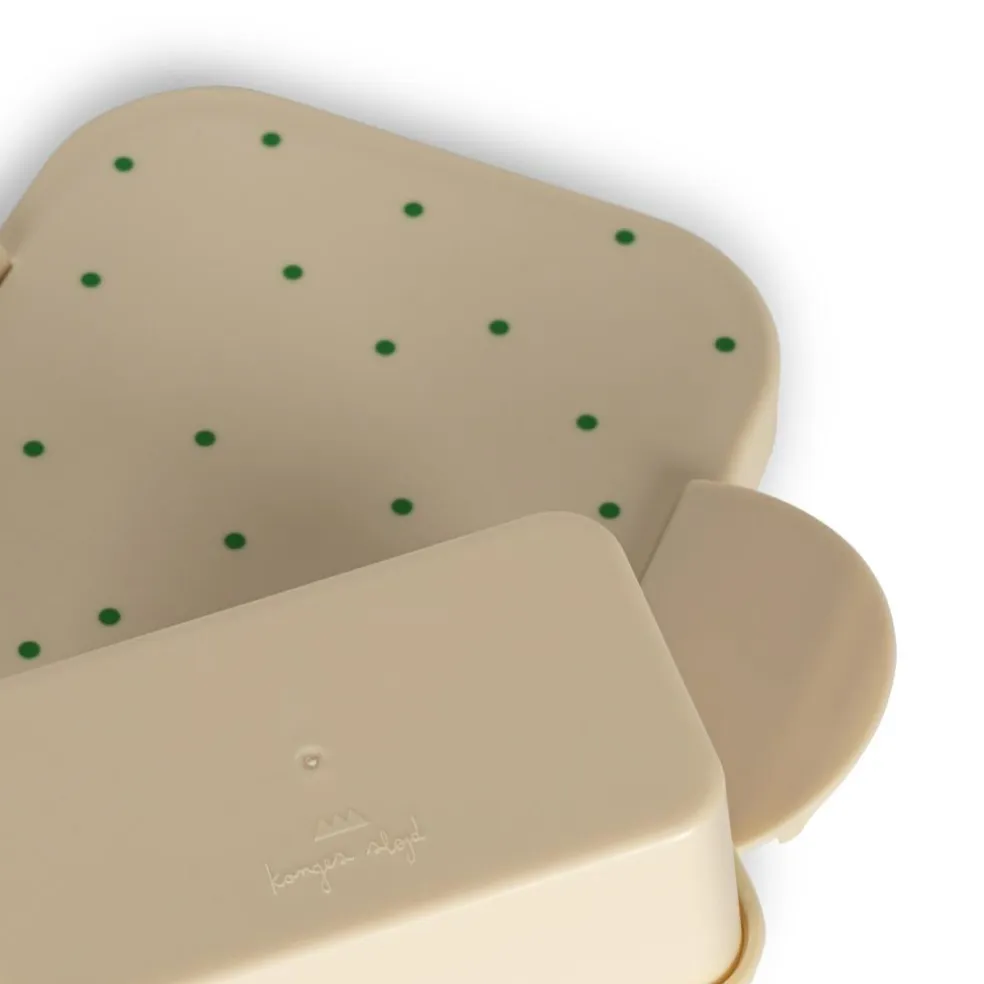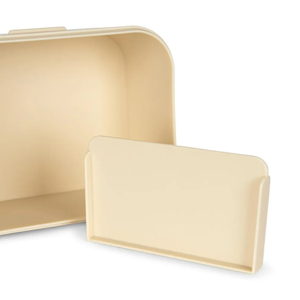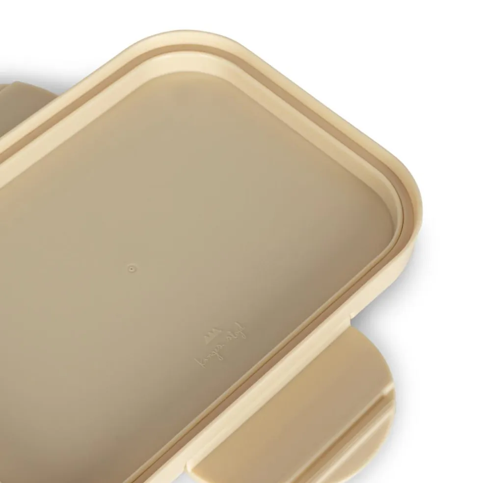 Madkassen har en praktisk inddeler i det store rum og der medfølger en mindre kasse i PLA med silikonelåg.