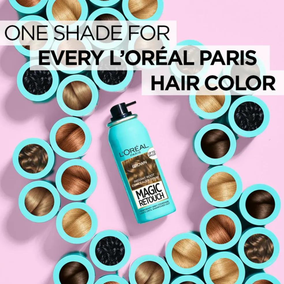 – Effektiv og afsmitningsfri farvespray til brunt hår, der dækker udgroning.