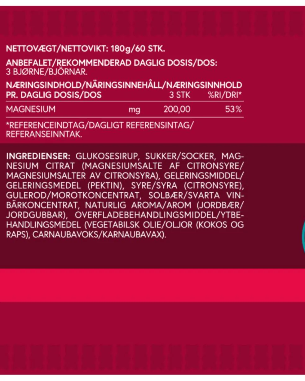 Anbefalet daglig dosis til voksne og børn fra 11 år: 3 vingummi bjørne.