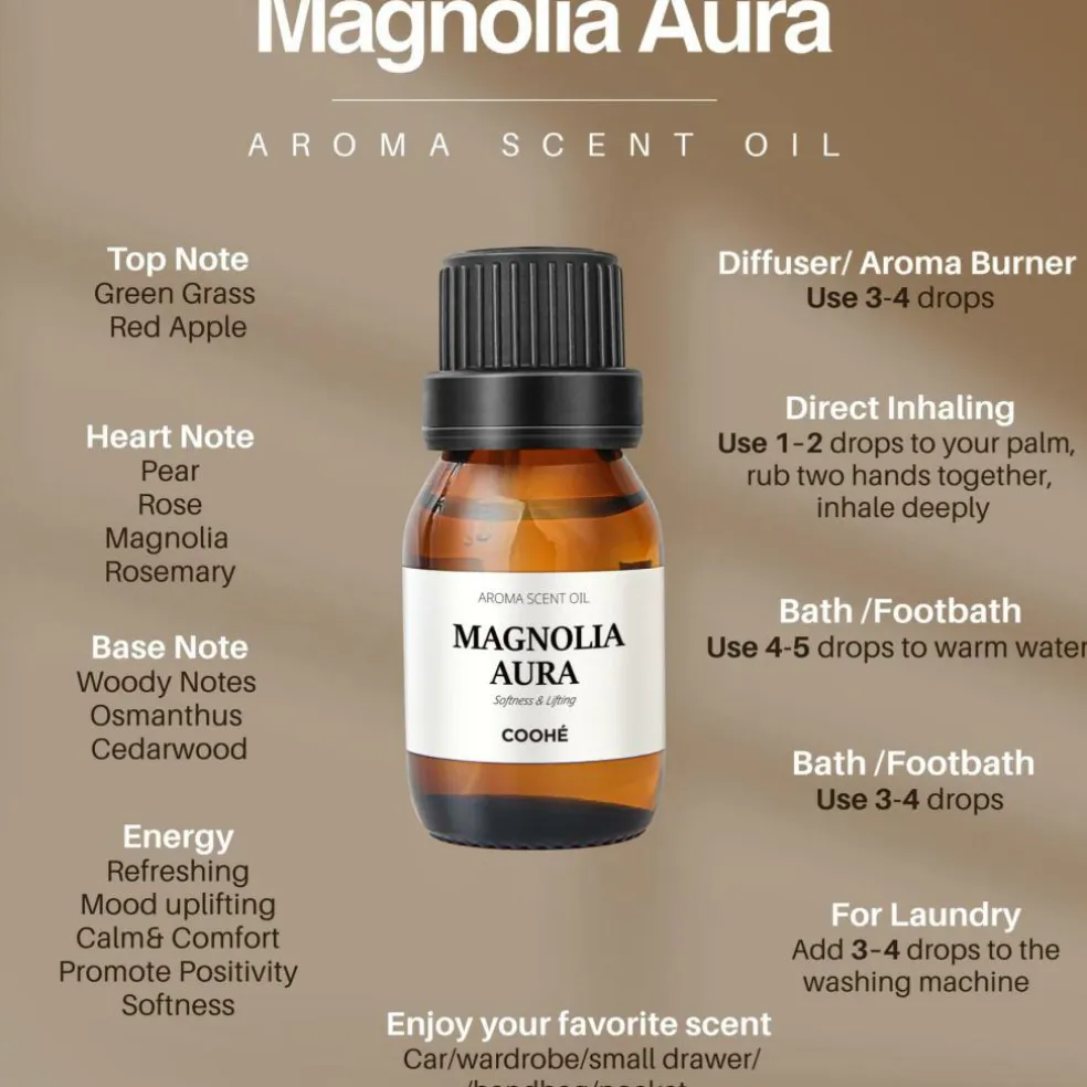 Anvendelse: Perfekt til brug i diffuser (maskine, træ eller sten), karbad, fodbad, tøjvask eller gulvvask. Brug 2–4 dråber ad gangen for en behagelig aroma. Som naturlig duftolie giver den normalt ikke hovedpine.