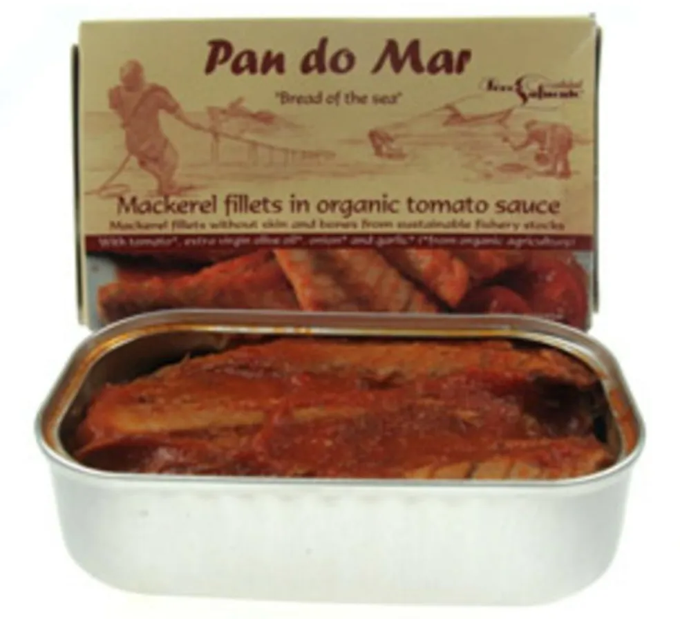 Disse makreller i tomat i BPA-fri indpakning bliver fanget med en line i fiskebåd tæt ved kysten.