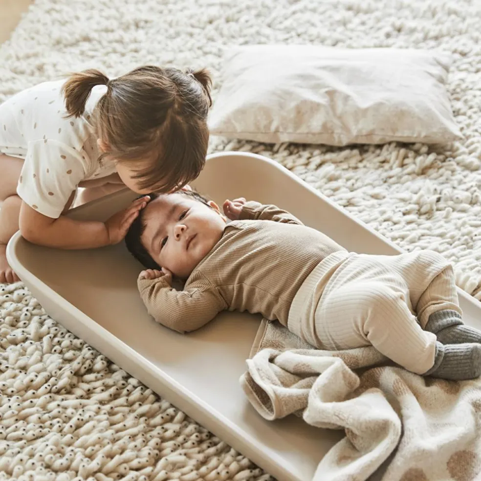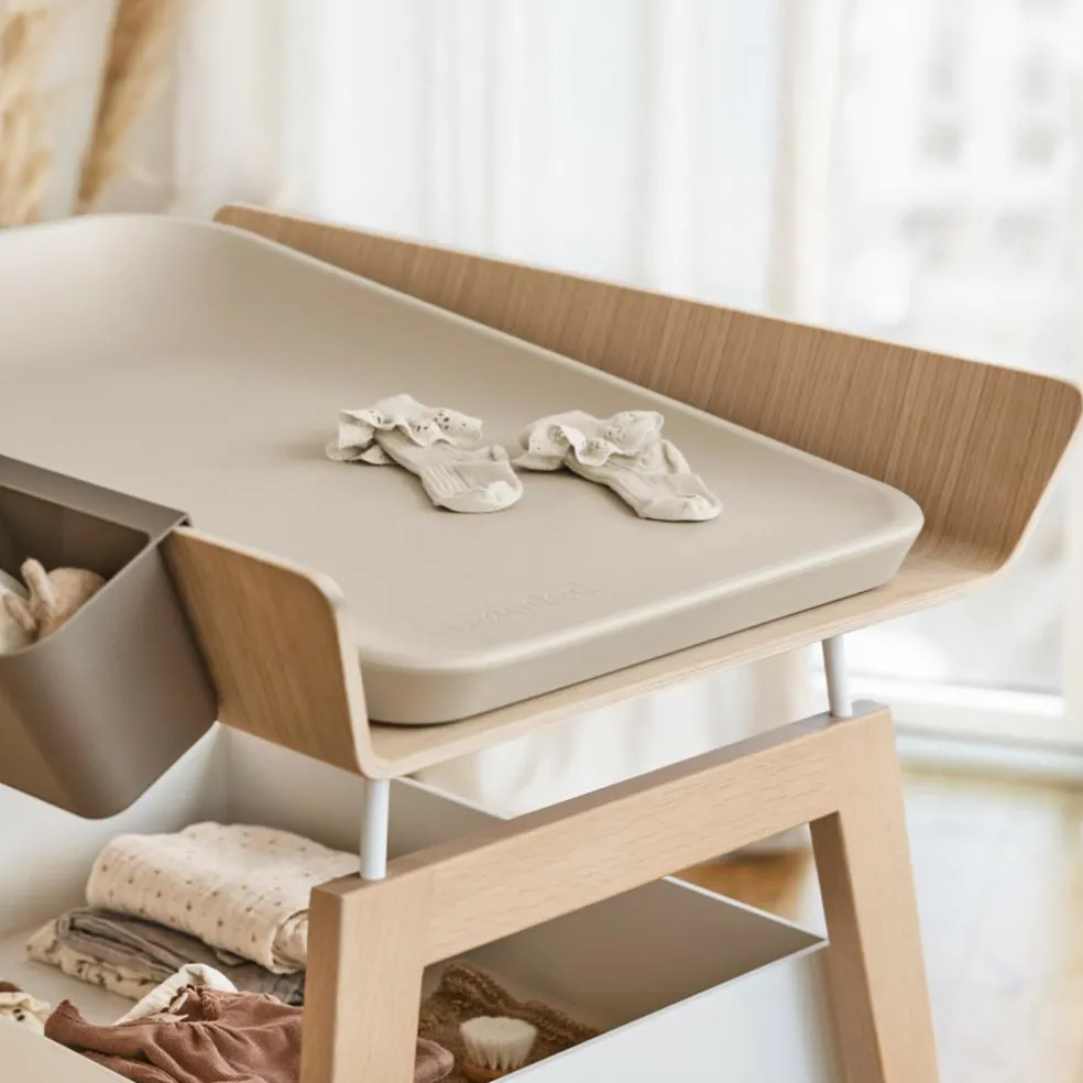Matty™ puslepuden er slidstærk og udstyret med en træplade på undersiden, der sikrer, at den står stabilt. Det betyder, at du uden problemer kan placere den på f.eks. en puslekommode, et bord eller direkte på gulvet. På bagsiden har puslepuden fire små gummifødder, der gør den skridsikker og samtidig sikrer ventilation, så underlaget under puslepuden ikke bliver fugtigt og efterlader mærker. Overfalden på puslepuden er samtidig vandafvisende, nem at rengøre og kan desuden desinficeres.