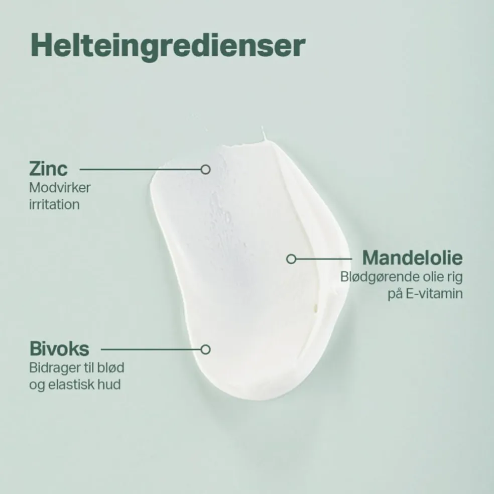 Med 6% zinkindhold har cremen en let optørrende effekt, som gør den særligt egnet til hud, der har svært ved at tørre op.