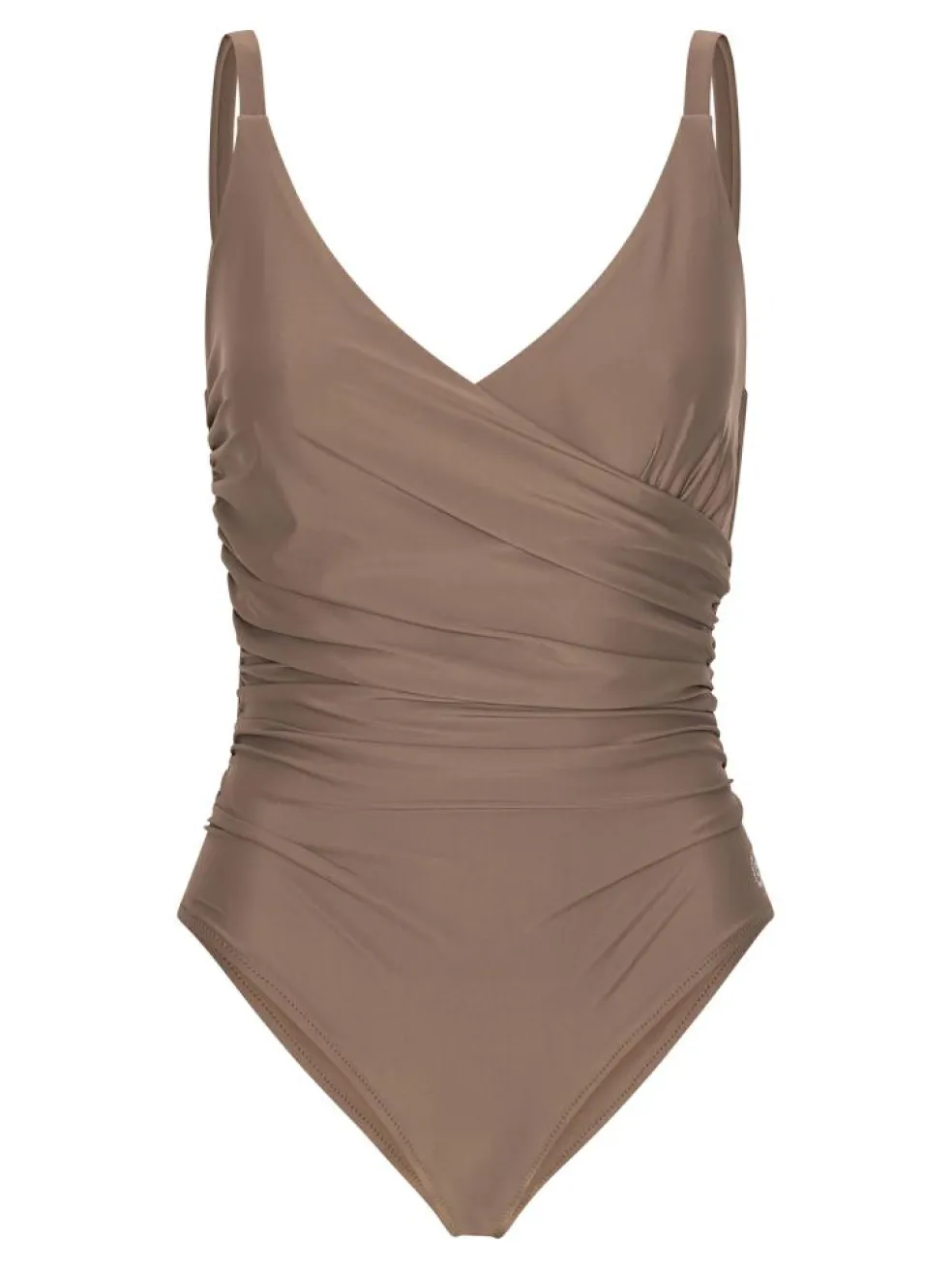 Vores Medewi draperet badedragt er designet med en smuk draperet slå-om skæring. Dette gør den flatterende på alle kropstyper og kan også fungere perfekt som en body sammen med et par bukser eller en nederdel.